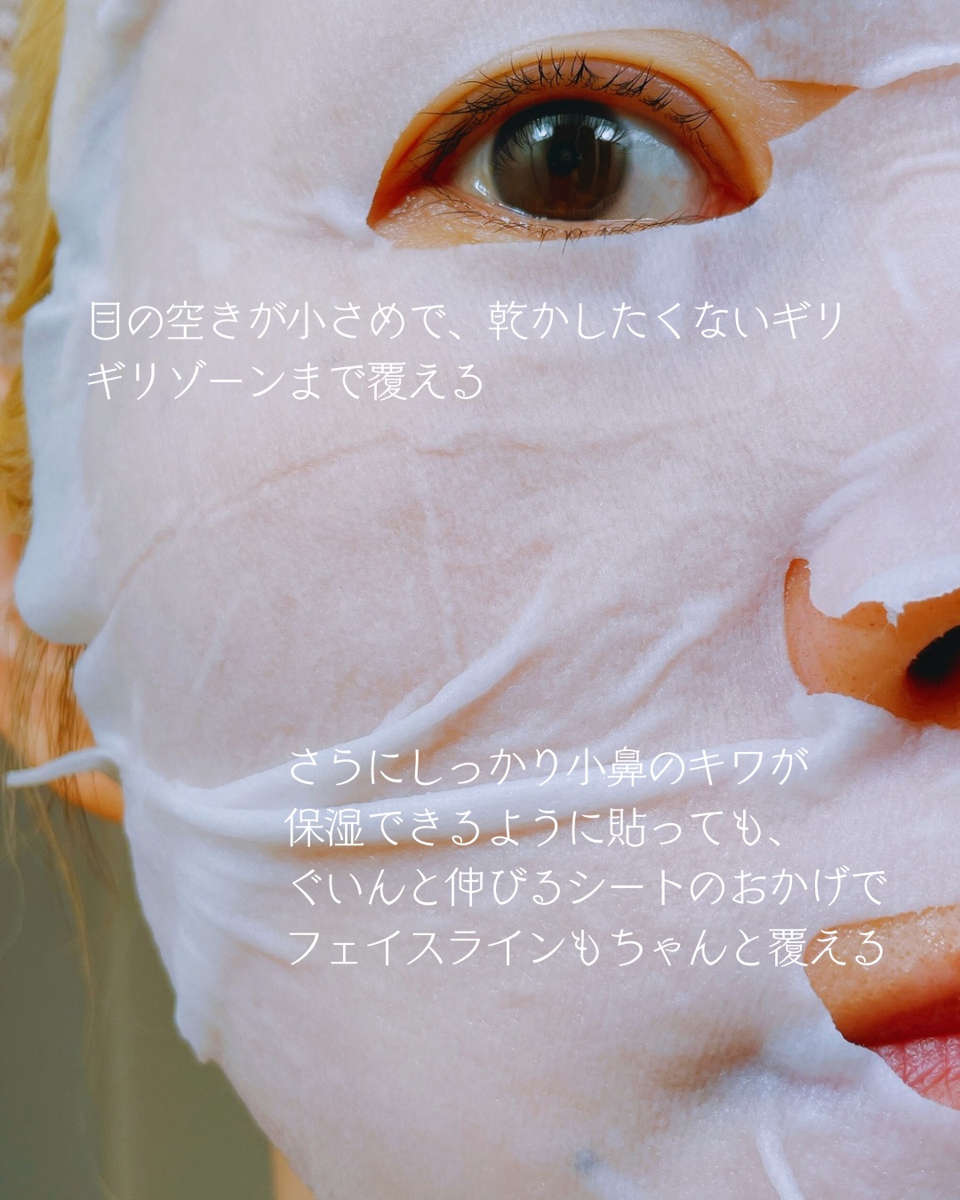 | シートの密着度も高いし、目元のくり抜きも小さめだから目のキワまでしっかり保湿できる! | 詳細を見る | |