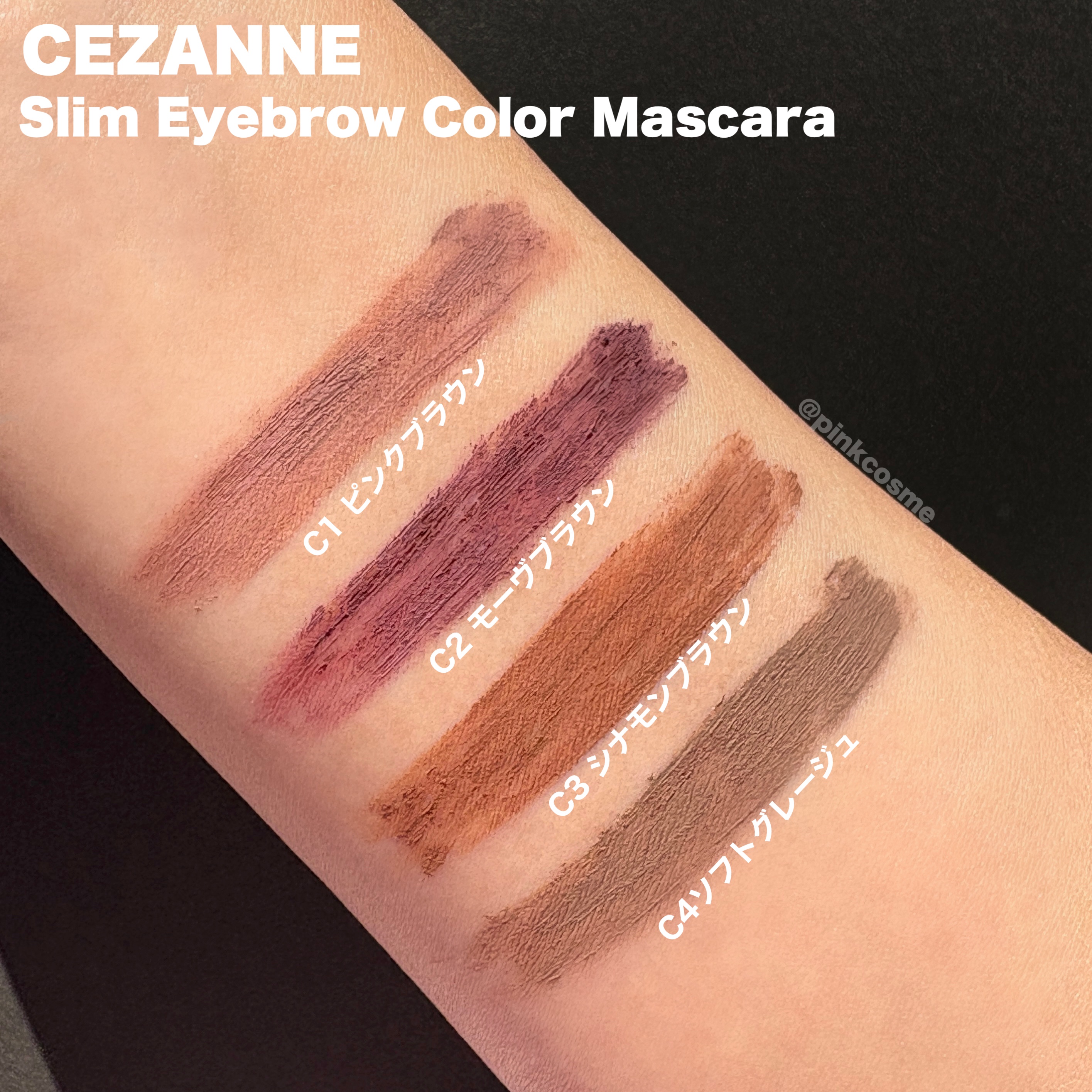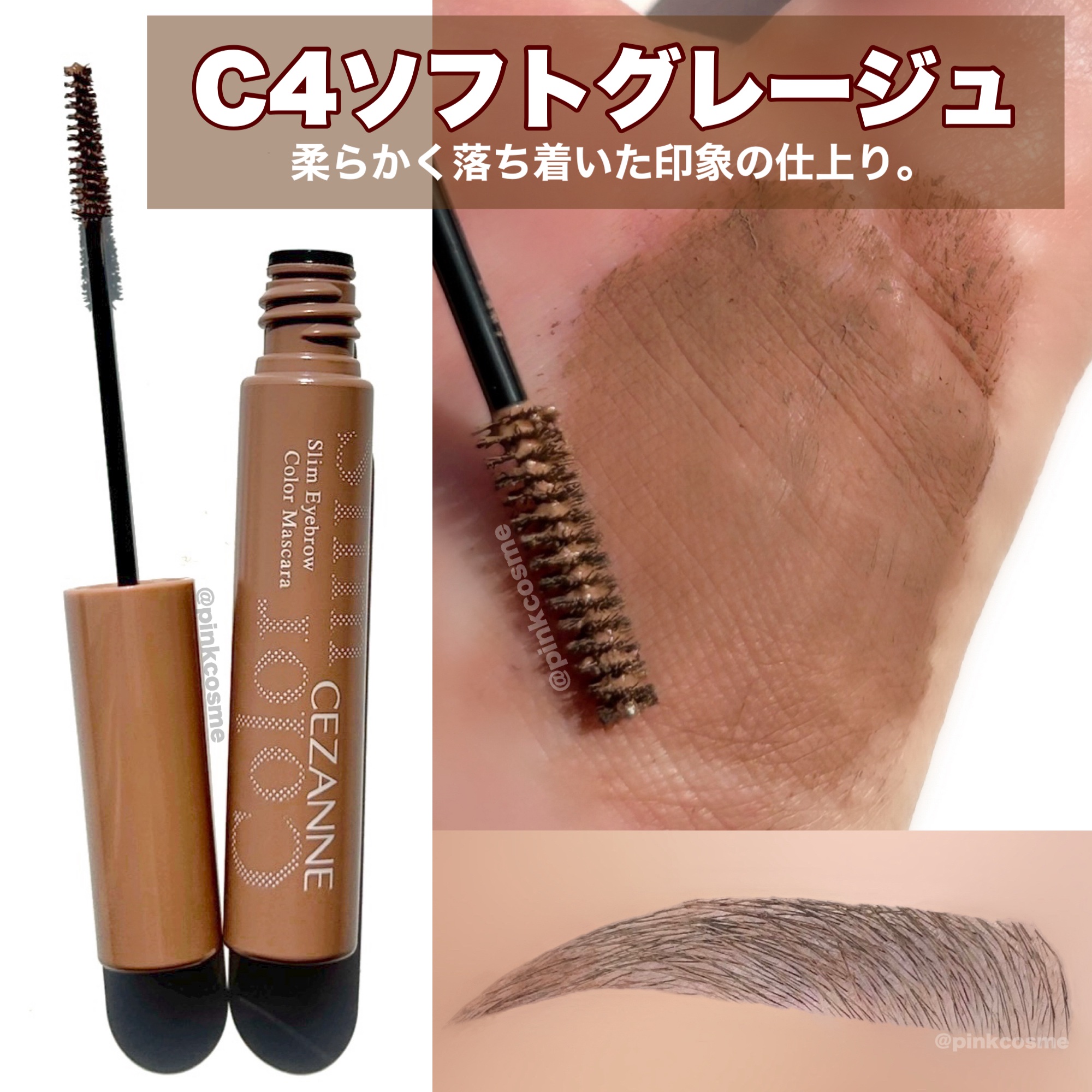 CEZANNE極細アイブロウマスカラC1ピンクブラウンC2モーヴブラウンC4ソフトグレージュ各¥528・1つ前に投稿したC4ソフトグレージュの他に手持ちの2色も使っているので色味を比較してみました!☺️・写真1~2枚は左からソフトグレージュ→...