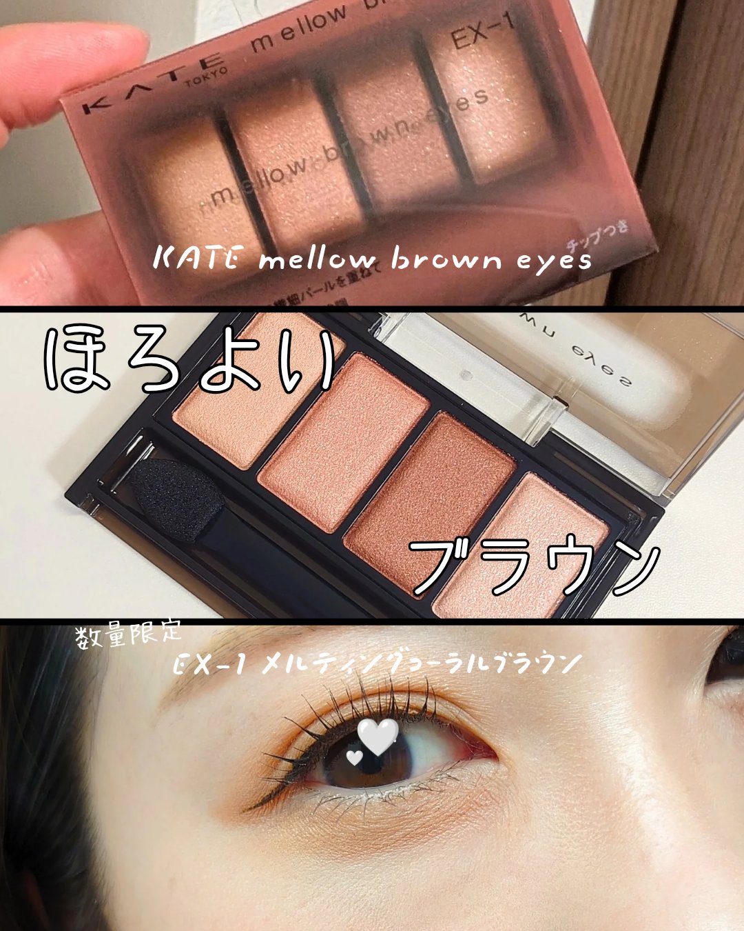KATE/ケイトメロウブラウンアイズEX-1メルティングコーラルブラウン透けブラウン×繊細パールで軽やかに引き立つ大きな目もと印象へケイトの話題のアイシャドウ、メロウブラウンアイズから、数量限定のカラー「EX-1メルティングコーラルブラウン」...