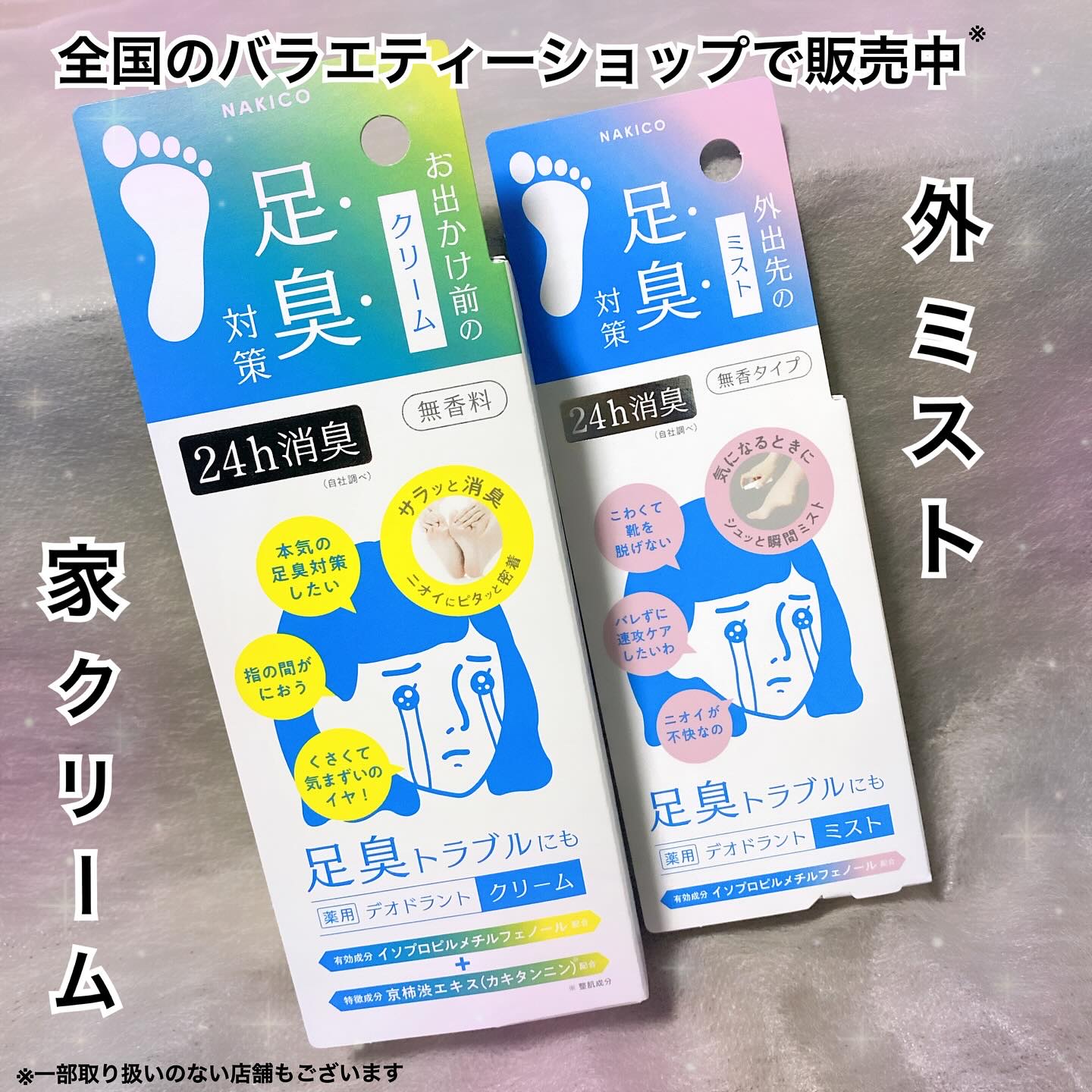 \夏の足蒸れニオイ対策に/NAKICOの24時間足臭消臭**自社調べNAKICO薬用デオドラントフットクリーム薬用デオドラントフットミスト《商品特徴》夏の足蒸れニオイ対策に!薬用成分がニオイの原因を消す24時間足臭消臭*1のクリーム&ミスト♡...