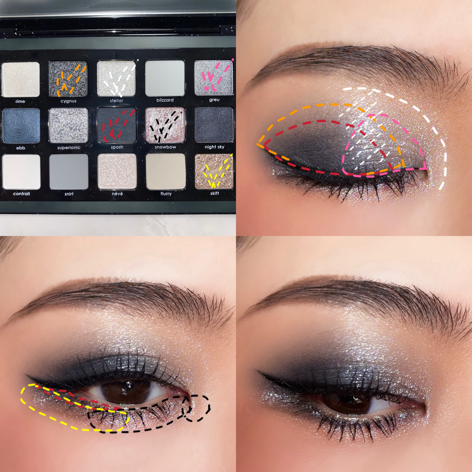 アイシーなピンクと水色のヘイローにしてみたよ🩷🩵やっぱりラメが可愛いパレット🥹✨✨ マットでベースを作ってから、同系色のラメを乗せたヘイローで、下まぶたは馴染みの良いようにベージュとピンクラメにシンプルに❣️ 雪の季節にやりたいメイクが出来たかな🤭☃❄