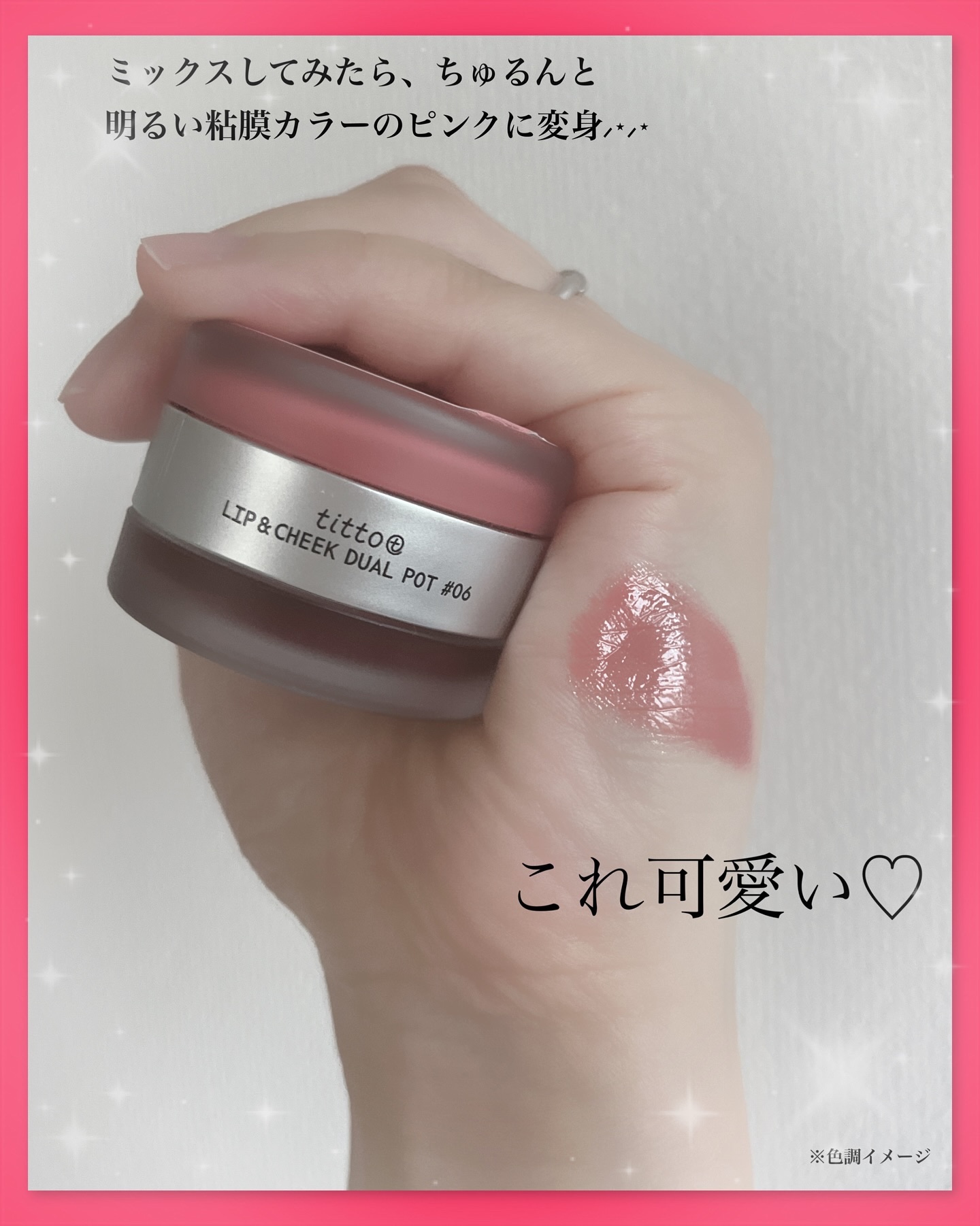 TITTOのLIP&CHEEK💖じゅわっとした発色で、これ1つでリップにもチークにも使える万能アイテム🫶🏻体温でとろけるようなメルティテクスチャーで、唇にも頬にもスッと馴染んでツヤっぽい血色感をプラスしてくれる💄AQUABEAMDUALPOT...