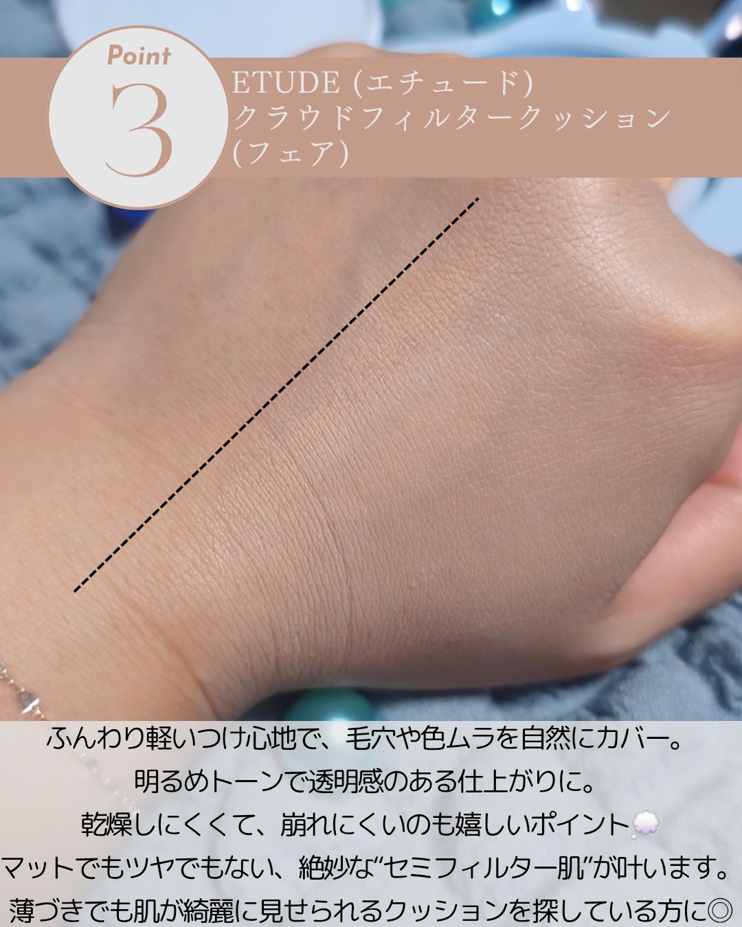 [サラふわクッションファンデ☁️]▶︎ETUDE▷クラウドフィルタークッション(@etudejapan) SPF42PA+++以前、キャンペーンでミニサイズをいただいてから気に入って現品購入したクラウドフィルタークッション☁️ふわっと軽い付...