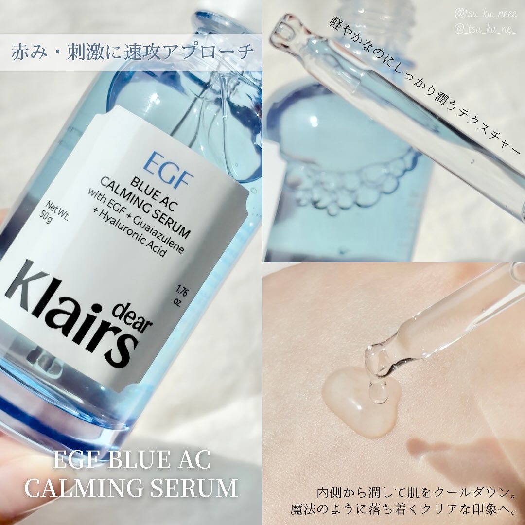 Klairsさまからいただきました。KlairsEGFブルーカーミングトナーパッドEGFブルーアクネ鎮静美容液ミッドナイトブルーカーミングクリーム✂klairsのブルーラインとは。共通成分▶︎EGFとグアイアズレン。トラブル前・中・後、全ての...