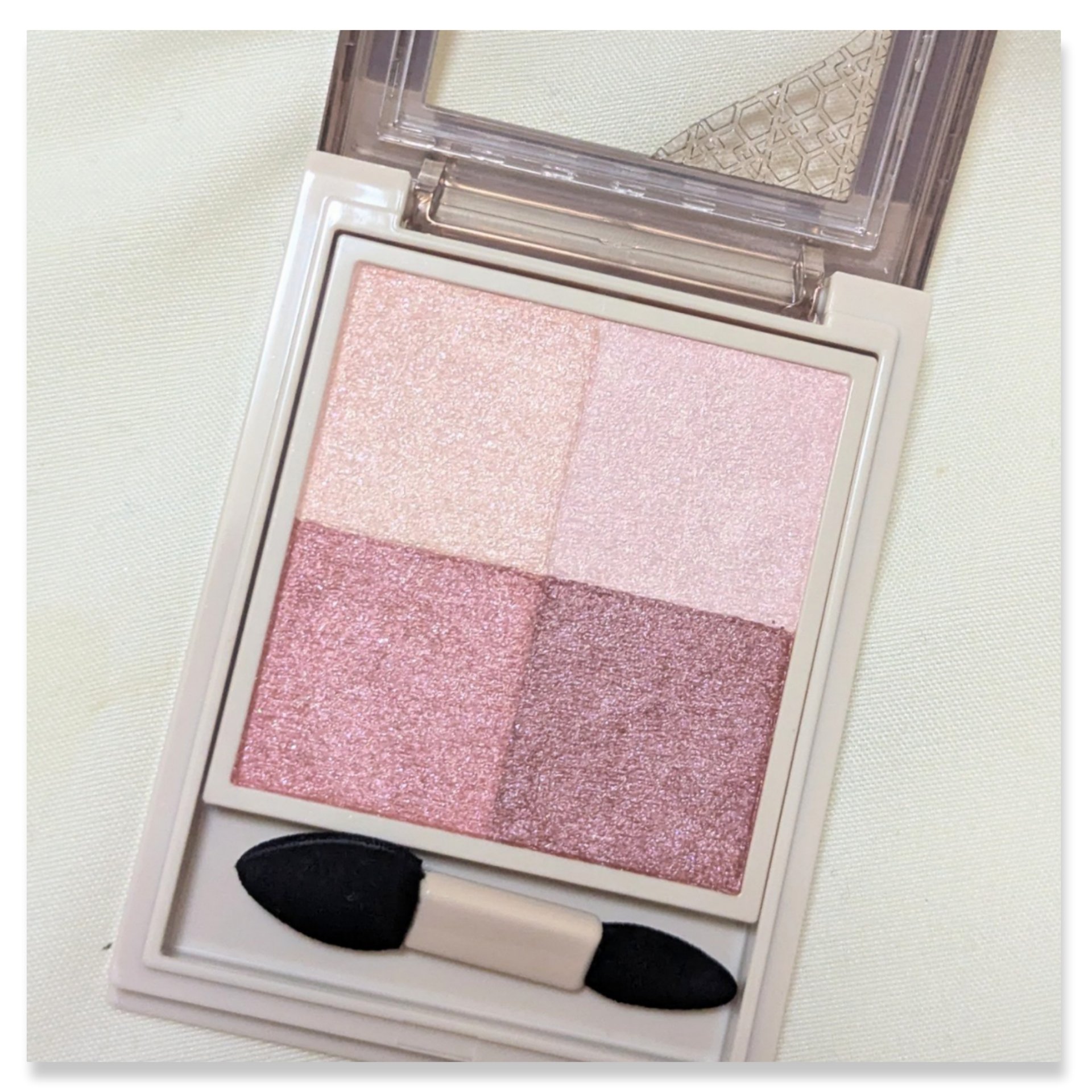 - ● しっとりほぐれるようなタッチで密着し、上品なツヤめきと透け感発色で目もとを彩る 4 色セットアイカラーです。 やさしいトーンの色味と繊細な輝きで、どこか儚げでアンニュイな印象に導きます。 ● レフ板のように光を美しく反射させるライトリフレクションパウダーを配合。 どの角度から見ても、繊細な輝きと濡れたようなツヤを演出します。 ● 透け感があり、軽いタッチでのび広がるクリアパウダーを配合。 色味を重ねても濁りのない透け感発色を叶えます。 ● とてもキメ細かなパウダーに厳選したオイルを組み合わせることで、しっとりなめらかなほぐれ感を実現。 薄膜にのび広がり、まぶたへ溶け込むように密着します。 ● スルスルとした軽い感触のオイルを配合。摩擦抵抗を減らすことで、まばたきや表情の変化によるヨレを防ぎます。 汗や皮脂にもくすみにくいため、時間が経ってもつけたての美しい発色が持続します。 ● まぶたに明るさをあたえ、後から重ねるアイカラーを美しく発色させる「スキンブライトカラー」(A)をセット。 光を味方につけてまぶたのくすみを飛ばし、明るくツヤめく目もとを叶えます。 ● 色ごとに仕切りがないため、1 色ずつはもちろん、パレット内で色を混ぜて塗布することもできます。 ● 美容液成分配合。乾燥しやすい目もとのうるおいをまもります。 ● 無香料