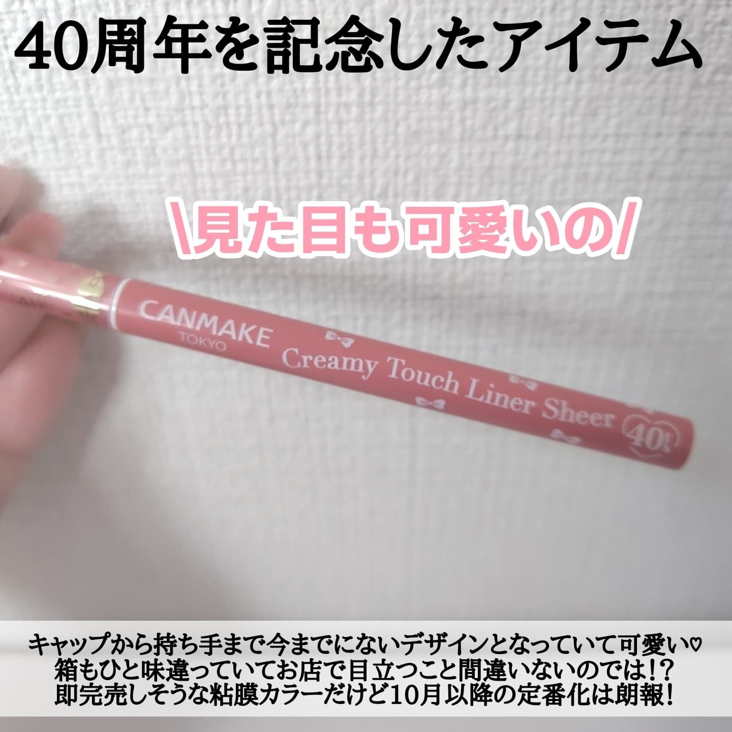 「キャンメイク」さまから商品提供をいただきました。〈キャンメイク〉クリーミータッチライナーシアー40thトゥルーレッド¥715キャンメイク40周年を記念したアイテム♡7月下旬発売🎀クリーミータッチライナーのシアータイプ!とろける描き心地♡1....