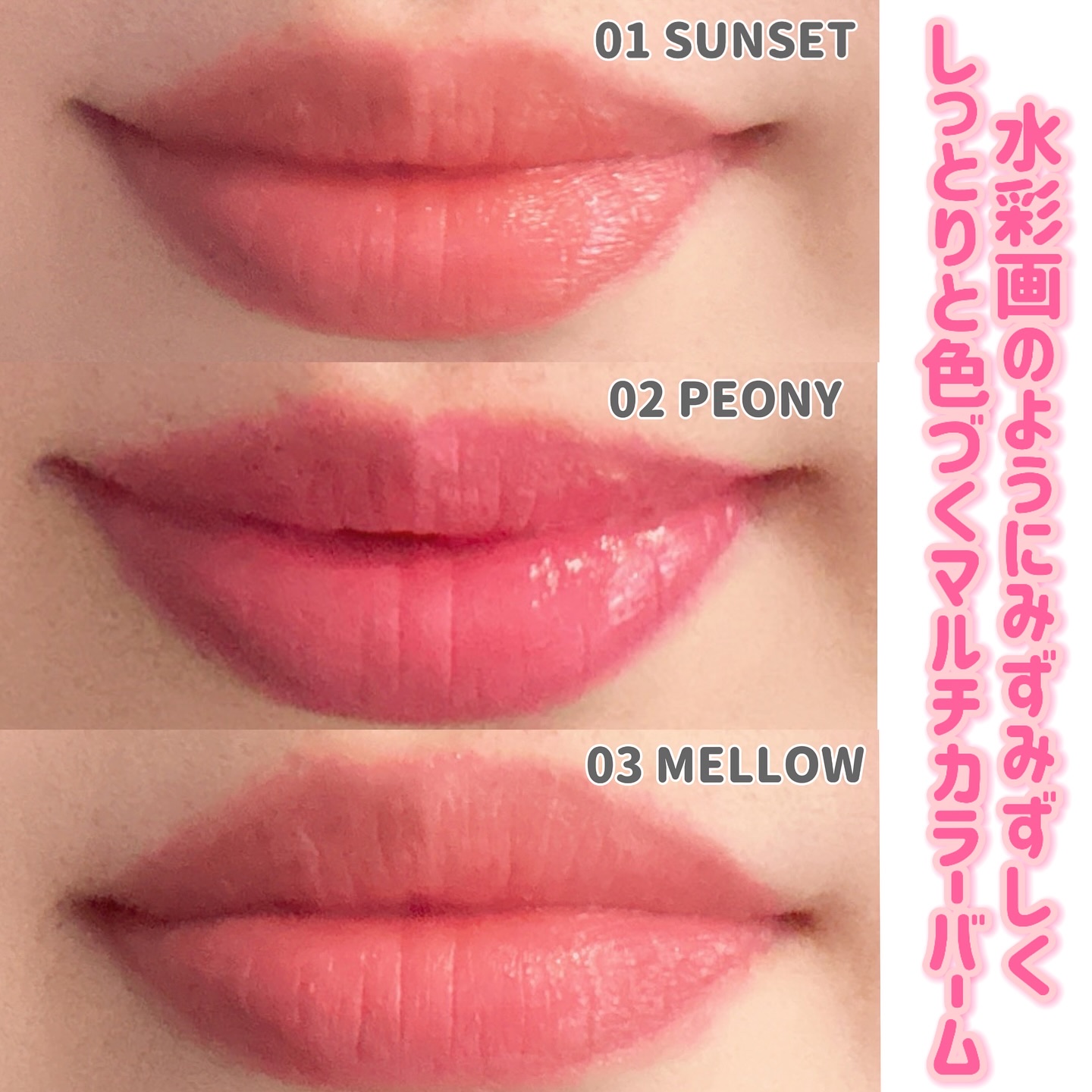 \マルチユースなカラーバーム🩷/SON&PARKアーティスプレッドカラーバーム・01SUNSET・02PEONY・03MELLOW「SON&PARK(ソンアンドパク)」のカラーバームを使ったよ♡水彩画のようにみずみずしく、しっとりと色づくマル...
