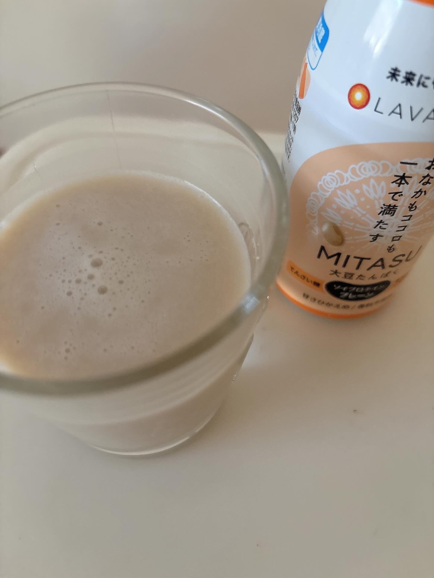MITASUプレーン手軽に摂れて腹持ちもいい。お味はとろみが少しあって、ほんのり甘い。クセがなく飲みやすく美味しい。常温で保存できるもの嬉しい。冷蔵庫で冷やしてから飲むと美味しいです。#MITASU#植物性たんぱく質飲料#LAVAandカネカ...