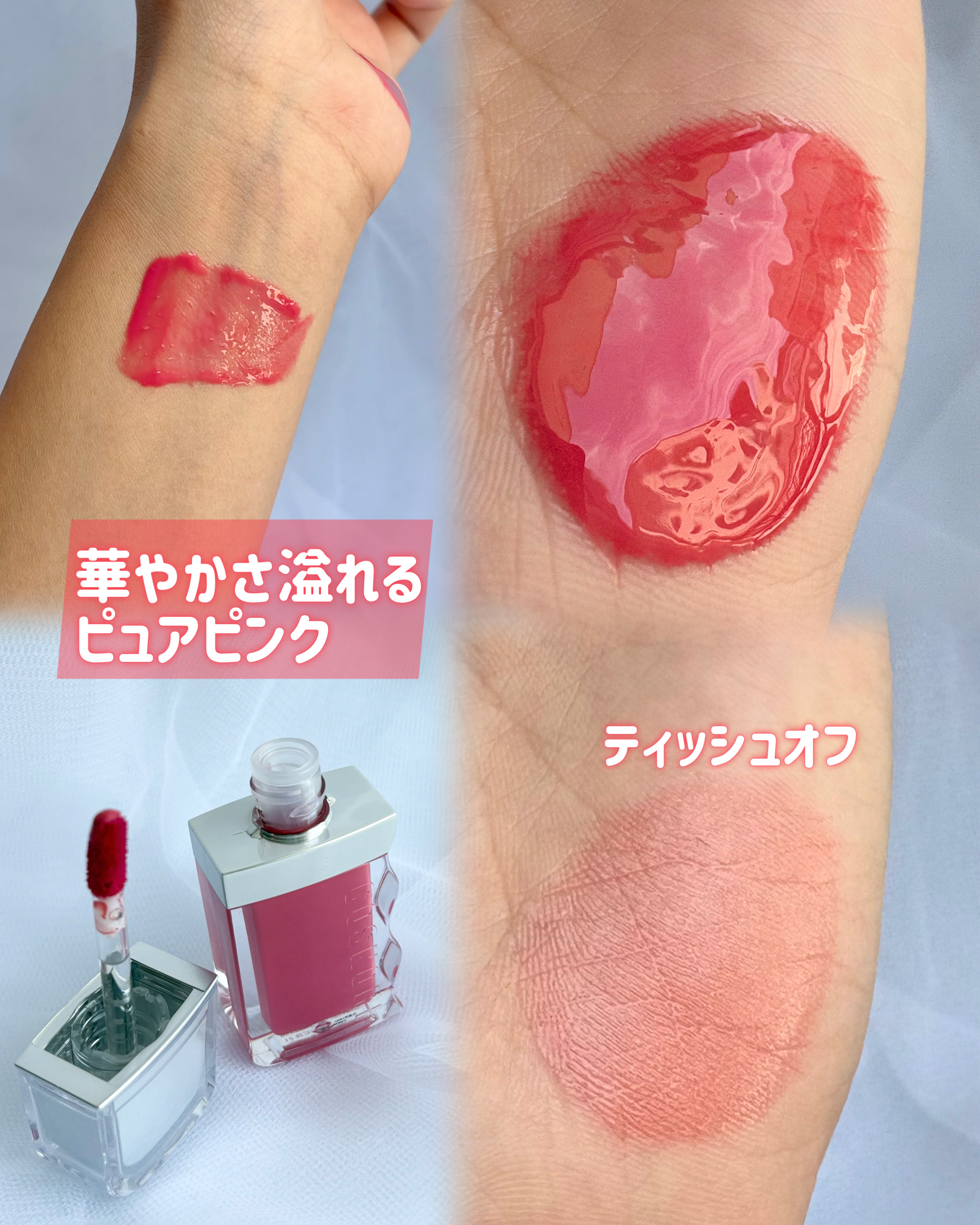 - <01 ソフィー(Surfy)> リンゴ酸ジイソステアリル、ジフェニルシロキシフェニルトリメチコン、精製水、ジフェニルジメチコン、ビスジグリセリルポリアシルアジペート-2、水添ポリイソブテン、ポリグリセリン-3、ポリソルベート60、セチルPEG/PPG-10/1ダイメチコン、イソステアリン酸ソルビタン、BG、ペンチレングリコール、1,2-ヘキサンジオール、ダイメジメチコン、アクリル酸ヒドロキシエチル/ナトリウムアクリロイルジメチルタウリン酸共重合体スクアラン、セテアレス-20、二酸化チタン、エチルヘキシルグリセリン、赤色227号、黄色5 号、香料、赤色104号(1)、水酸化酸化アルミニウム、ポリアクリル酸アンモニウム溶液、黄色4号、フェノキシエタノール、マカデミア種子油、ローズヒップ油、ツバキ油、トコフェロール <02 ピンクラッシュ(Pinkrush)> リンゴ酸ジイソステアリル、ジフェニルシロキシフェニルトリメチコン、精製水、ビスジグリセリルポリアシルアジペート-2、ジフェニルジメチコン、水添ポリイソブテン、ポリグリセリン-3、ポリソルベート60、セチルPEG/PPG-10/1ダイメチコン、イソステアリン酸ソルビタン、BG、ダイメジメチコン、ペンチレングリコール、1,2-ヘキサンジオール、アクリル酸ヒドロキシエチル/ナトリウムアクリロイルジメチルタウリン酸共重合体スクアラン、セテアレス-20、二酸化チタン、エチルヘキシルグリセリン、赤色227号、黄色5 号、香料、水酸化酸化アルミニウム、ポリアクリル酸アンモニウム溶液、フェノキシエタノール、マカデミア種子油、ローズヒップ油、ツバキ油、トコフェロール <03 グレア(Glare) > リンゴ酸ジイソステアリル、ジフェニルシロキシフェニルトリメチコン、精製水、ビスジグリセリルポリアシルアジペート-2、ジフェニルジメチコン、水添ポリイソブテン、ポリグリセリン-3、ポリソルベート60、セチルPEG/PPG-10/1ダイメチコン、イソステアリン酸ソルビタン、BG、ペンチレングリコール、1,2-ヘキサンジオール、ダイメジメチコン、アクリル酸ヒドロキシエチル/ナトリウムアクリロイルジメチルタウリン酸共重合体スクアラン、セテアレス-20、二酸化チタン、エチルヘキシルグリセリン、黄色5 号、香料、赤色104号(1)、赤色227号、水酸化酸化アルミニウム、ポリアクリル酸アンモニウム溶液、黄色4号、フェノキシエタノール、ブリリアントブルーFCF、マカデミア種子油、ローズヒップ油、ツバキ油、トコフェロール <04 ウィッティー(Witty)> リンゴ酸ジイソステアリル、ジフェニルシロキシフェニルトリメチコン、精製水、ビスジグリセリルポリアシルアジペート-2、ジフェニルジメチコン、水添ポリイソブテン、ポリグリセリン-3、ポリソルベート60、セチルPEG/PPG-10/1ダイメチコン、イソステアリン酸ソルビタン、BG、ダイメジメチコン、ペンチレングリコール、1,2-ヘキサンジオール、アクリル酸ヒドロキシエチル/ナトリウムアクリロイルジメチルタウリン酸共重合体スクアラン、セテアレス-20、二酸化チタン、黄色5 号、赤色227号、エチルヘキシルグリセリン、香料、水酸化酸化アルミニウム、ポリアクリル酸アンモニウム溶液、フェノキシエタノール、マカデミア種子油、ローズヒップ油、ツバキ油、トコフェロール <05 パンチ(Punch)> リンゴ酸ジイソステアリル、ジフェニルシロキシフェニルトリメチコン、精製水、ジフェニルジメチコン、ビスジグリセリルポリアシルアジペート-2、水添ポリイソブテン、ポリグリセリン-3、ポリソルベート60、セチルPEG/PPG-10/1ダイメチコン、イソステアリン酸ソルビタン、BG、ペンチレングリコール、1,2-ヘキサンジオール、ダイメジメチコン、アクリル酸ヒドロキシエチル/ナトリウムアクリロイルジメチルタウリン酸共重合体二酸化チタン、スクアラン、セテアレス-20、黄色5 号、エチルヘキシルグリセリン、香料、赤色227号、赤色104号(1)、水酸化酸化アルミニウム、ポリアクリル酸アンモニウム溶液、フェノキシエタノール、マカデミア種子油、ローズヒップ油、ツバキ油、トコフェロール <06 ディア(Dear)> リンゴ酸ジイソステアリル、ジフェニルシロキシフェニルトリメチコン、精製水、ジフェニルジメチコン、ビスジグリセリルポリアシルアジペート-2、水添ポリイソブテン、ポリグリセリン-3、ポリソルベート60、セチルPEG/PPG-10/1ダイメチコン、イソステアリン酸ソルビタン、BG、ペンチレングリコール、1,2-ヘキサンジオール、ダイメジメチコン、アクリル酸ヒドロキシエチル/ナトリウムアクリロイルジメチルタウリン酸共重合体スクアラン、セテアレス-20、二酸化チタン、エチルヘキシルグリセリン、黄色5 号、赤色227号、香料、水酸化酸化アルミニウム、黄色4号、ポリアクリル酸アンモニウム溶液、フェノキシエタノール、マカデミア種子油、ブリリアントブルーFCF、ローズヒップ油、ツバキ油、トコフェロール <07 カインド(Kind)> リンゴ酸ジイソステアリル、ジフェニルシロキシフェニルトリメチコン、精製水、ジフェニルジメチコン