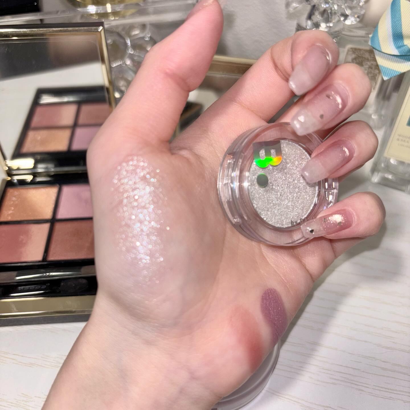 毎年年明けに発売される新宿伊勢丹限定カラー🥺🩷🎀 meecoでのみオンライン購入ができるのですが昨年はサーバーダウンで買えずとっても悔しかったので今年は本気で挑みました🥹💦 全てパールを含むカラーで見た目ほどくすみもなく、とにかく中央の紫がかわいい...😭😭 明度が高くてあまりに好みのパレットすぎました 光に当たった時の華やかかつ上品な輝き方にDiorらしさを感じつつ、デパコスにしか出せない魅力だなと💭