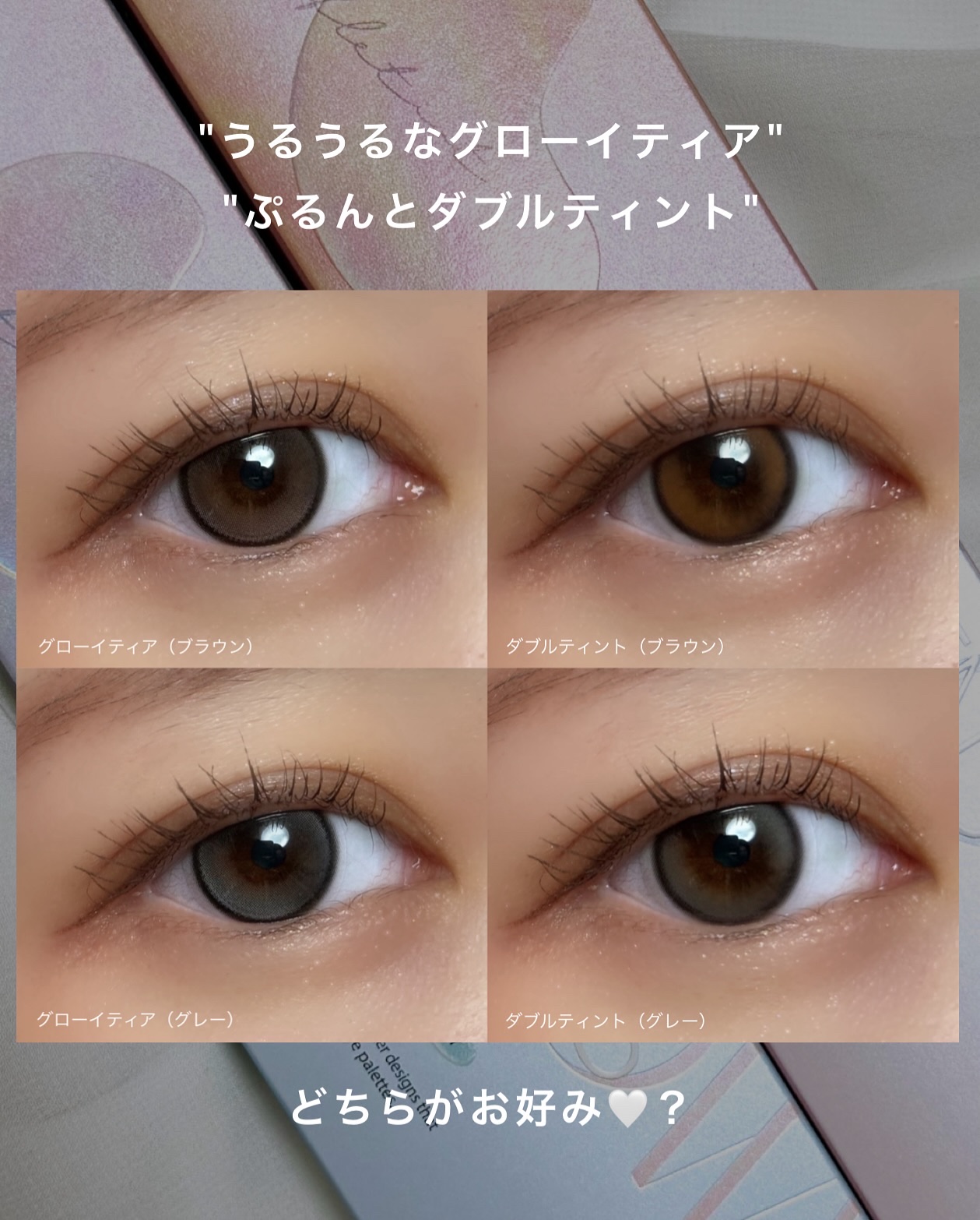 \激盛れカラコン4種比較(新作含む!)/オーレンズのDoubleTintブラウン/グレーと、新作のGLOWYTearGlowyTearブラウン/グレーを比較してみたよ!スペックはこんな感じ!▶︎DoubleTintブラウン/グレー 【スペッ...