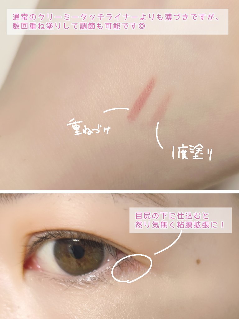 - 1.5㎜のとろける描き心地の極細ジェルライナー「クリーミータッチライナー」から、シアータイプが登場! 肌に溶け込むような透け発色で、メイク感を抑えた自然な仕上がり。 シアーなのにとにかく落ちにくい! 水・涙・汗に強いウォータープルーフで こすれにも強く、きれいな仕上がりが長時間続きます。 肌あたりが優しいやわらかな芯で、ラインを引く際にまぶたへの引っ掛かりも少なく肌をすべるようにスルスルとアイラインが引けます✨ 40th トゥルーレッドのキャップは、40周年記念として初回発売時のみ限定デザインで登場💗(※数量限定) ※初回限定キャップがなくなり次第通常キャップに切替となります。 【注意】 ★大変柔らかい芯ですので、芯は1㎜程度繰り出してお使いください。 ★一度繰り出した芯は戻りませんのでご注意ください。 ★芯が乾かないように、必ずキャップを閉めて保管してください。