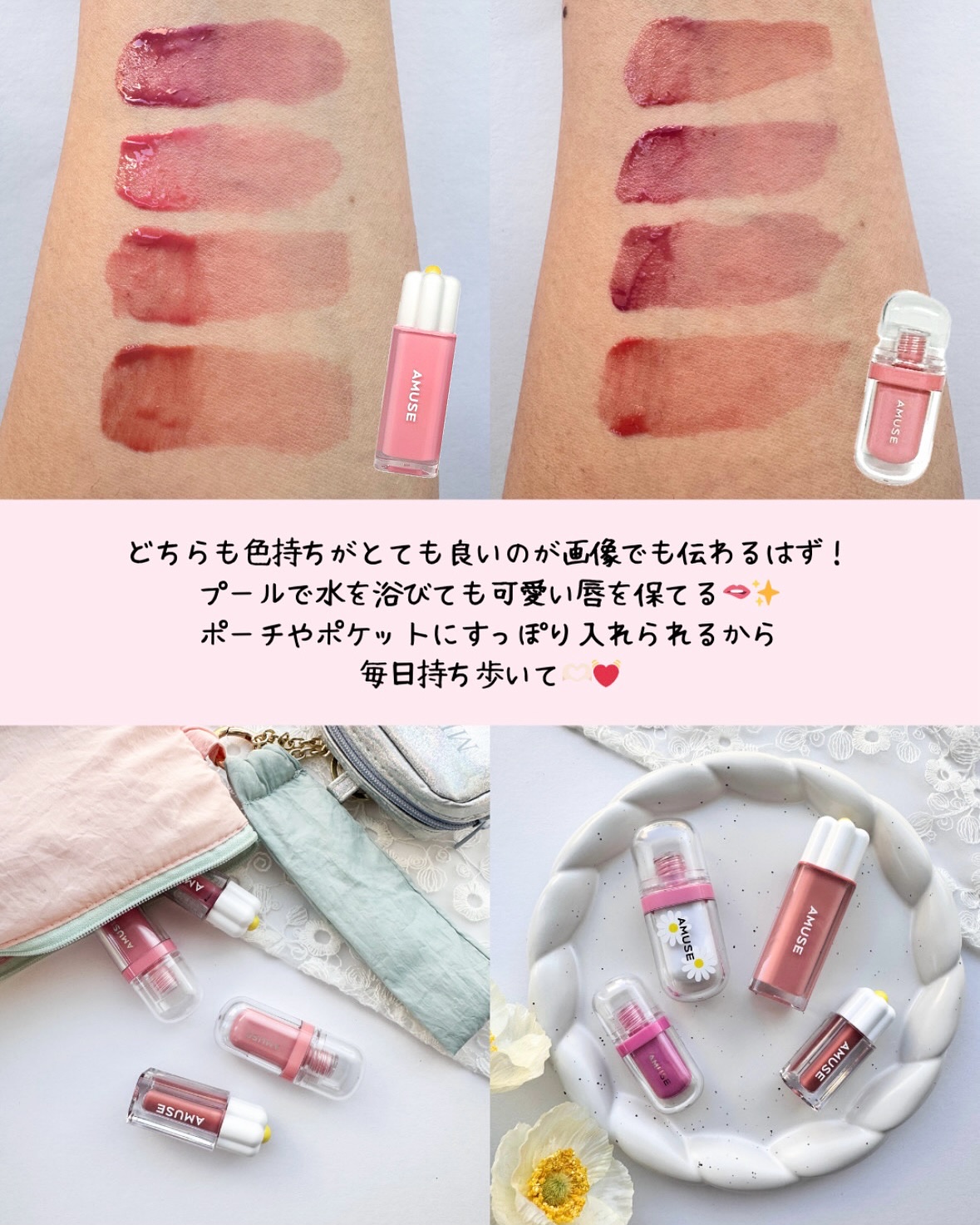 夏といえば水遊び・プール・海🌊🪼🏖️!濡れても落ちにくいティントのミニサイズで可愛いをキープしたい方必見です✊🏻☆♥#AMUSE#ジェルフィットティント/#デューティント人気の色持ちリップからミニサイズ登場❕バラエティショップなどで購入できま...