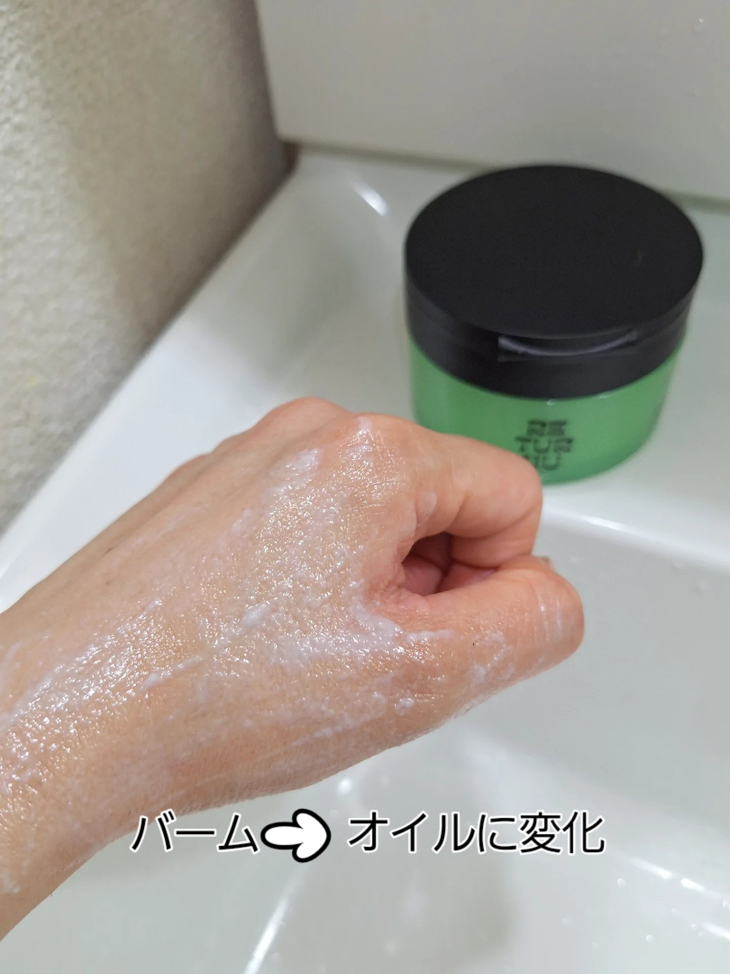 クレンジングバームが水に触れるとスクラブに👏🏻RETURNU(リターニュ) @returnu_jpポアシューターゴマージュクレンジングバームテクスチャーが変わるのが面白い✨バームの時は、かなり柔らかめのテクスチャーやさしくメイクと馴染...