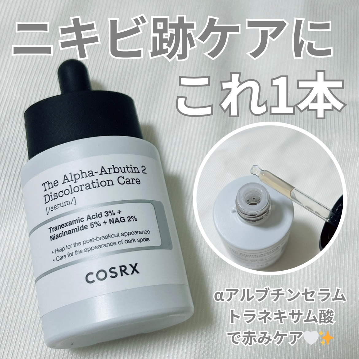 。.ꕤ‿COSRXRXザ・アルファアルブチン2ニキビ跡ケアセラム‿ꕤ.。薄茶色の液体で、肌の浸透は悪くないです。保湿力がしっかりあって、ちょっとだけべたつきます。アルファアルブチン・ナイアシンアミドなど6種類の有効成分で、肌キメ・肌のくすみ・...