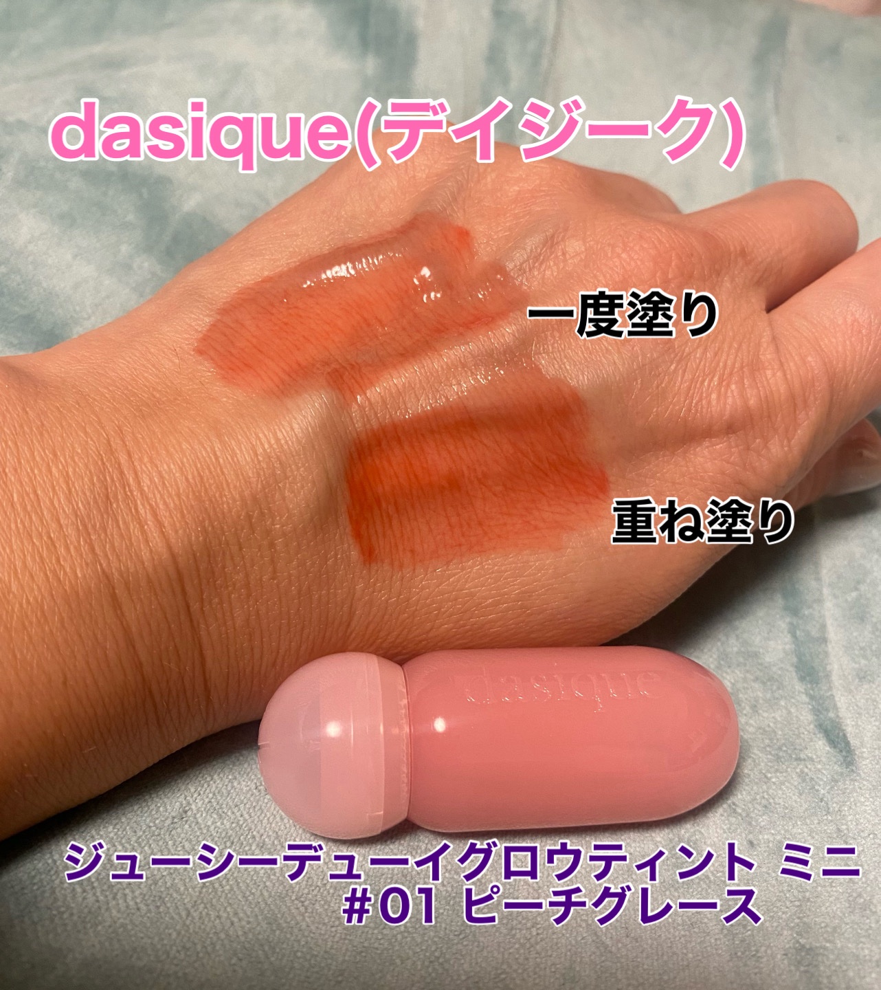 dasiqueから商品提供をいただきました。なめらかな伸びで密着がよく、ちゅるんと薄膜で包まれたような感じ。少しだけ甘くフルーティーな香りがします。今回は#01ピーチグレースを使用。ほのかに透明感のあるピッチカラーで、オンオフを問わず使いやす...