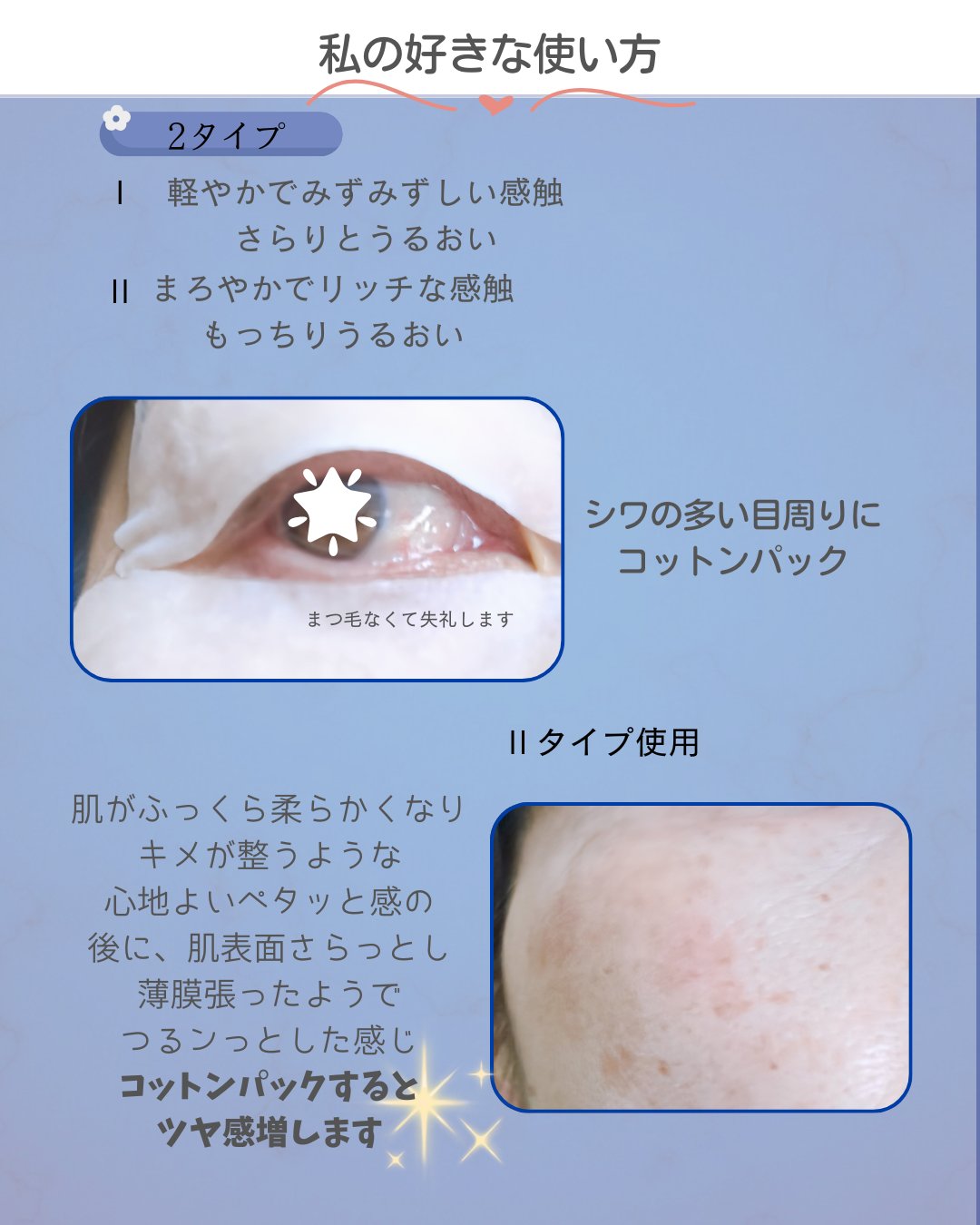 | 水っぽい乳白色のテクスチャーでバシャバシャと使えるのでさっぱりとした化粧水がお好きな人にはおすすめだと思います! | 詳細を見る |
