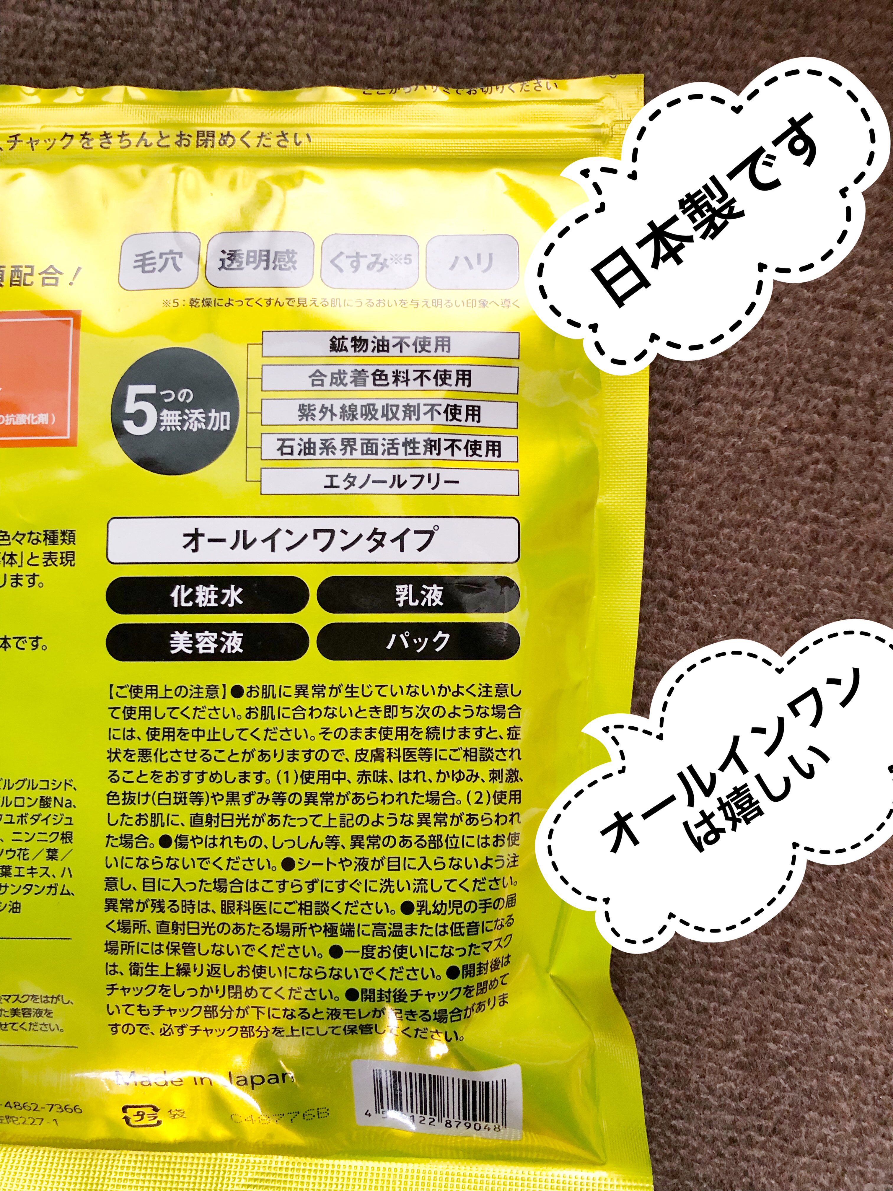 | スキンケアランキング第42位 | シートがみかん色でびっくり! とろっとろの液が含まれていて 貼り付けたらぴたーっとくっついてすごく気持ちいい! | 詳細を見る | |