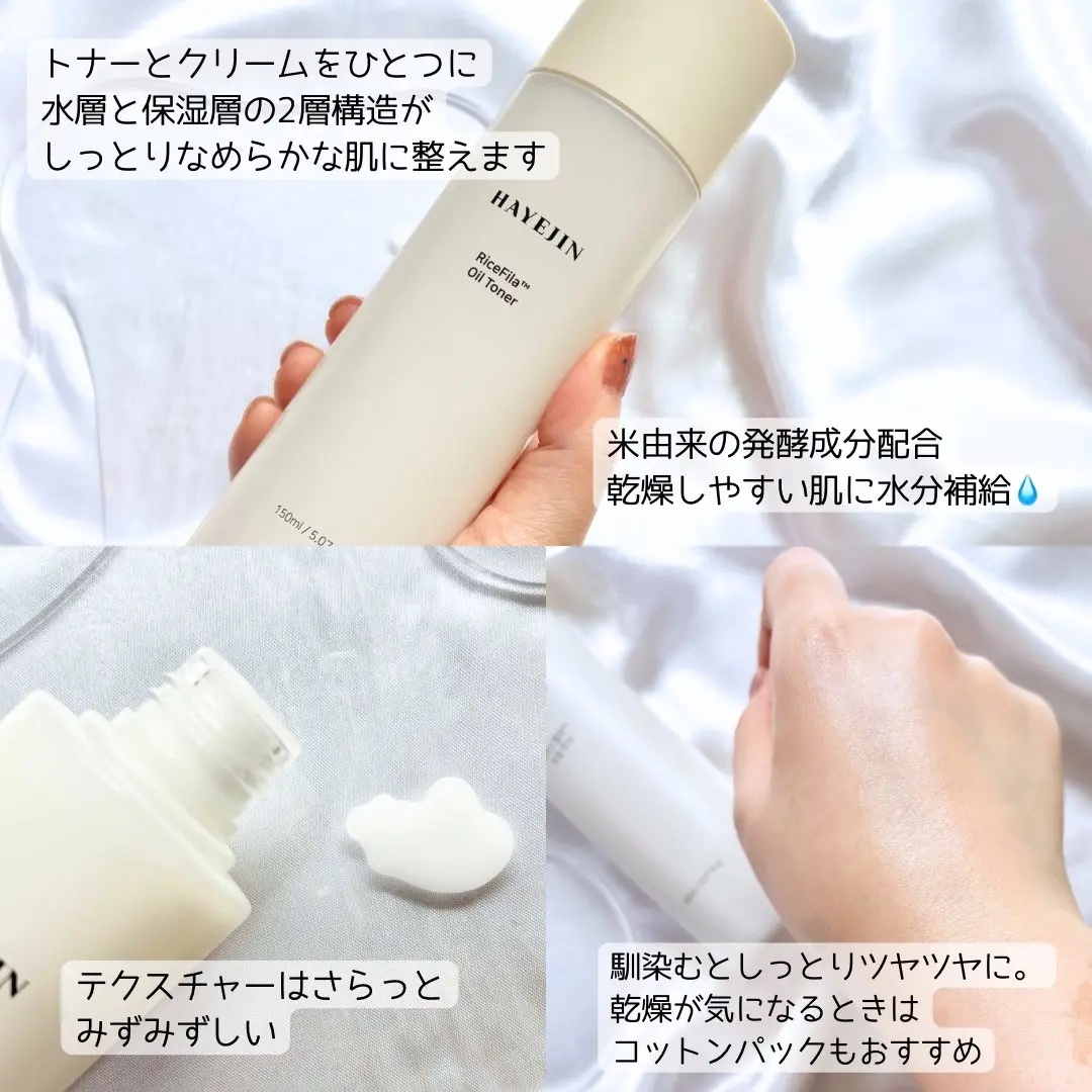 #PRHAYEJIN様より◉ライスフィラーオイルトナー提供していただきました✨シェイキング栄養トナー肌の油分と水分のバランスを整えるトナーとクリームの2層構造米由来の発酵成分を配合しっとりと滑らかな肌へ❣️2層になっているので振って使うょ❣️...