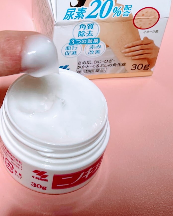 ニノキュアはそんな3つのポイントを考えて作られた、自宅でケアができる医薬品。 一般用医薬品最大量である20%配合の尿素がたまった古い角質を軟化させ除去。 トコフェロール酢酸エステルの効果で血行を促進し、ブツブツの原因となる肌の代謝(ターンオーバー)を正常化。 そして、グリチルリチン酸モノアンモニウムの抗炎症効果で肌の赤みを改善。 これらの有効成分の3つの効果により、使い続けることで、ブツブツの気にならない、すべすべの肌へと導きます。 ジャータイプのクリームで伸びの柔らかめ 塗った後は少しベタつくが気にならない程度 肝心のブツブツは少し改善しているかは使い続けてみます ジャータイプより衛生的なチューブがあればなぁ