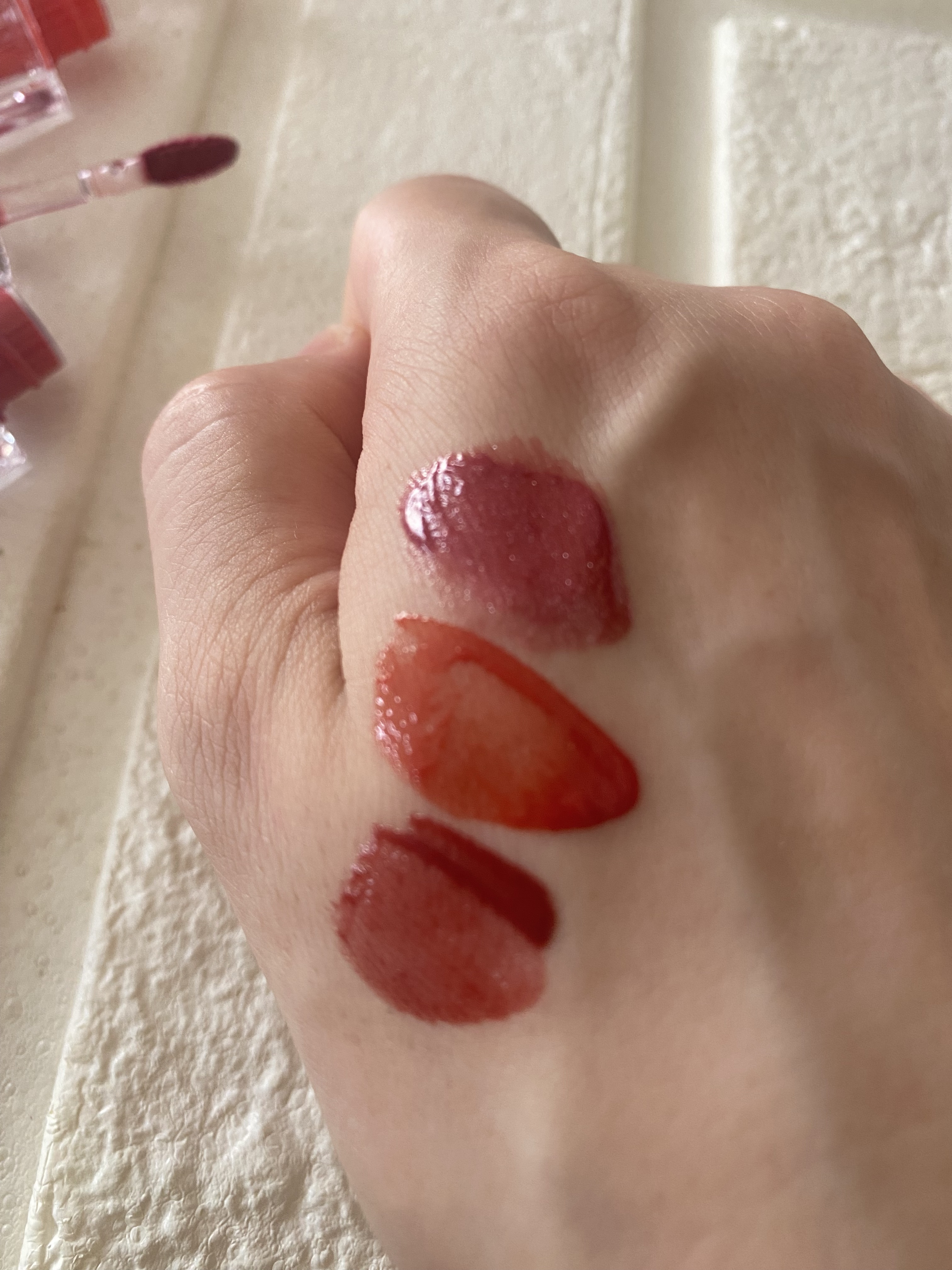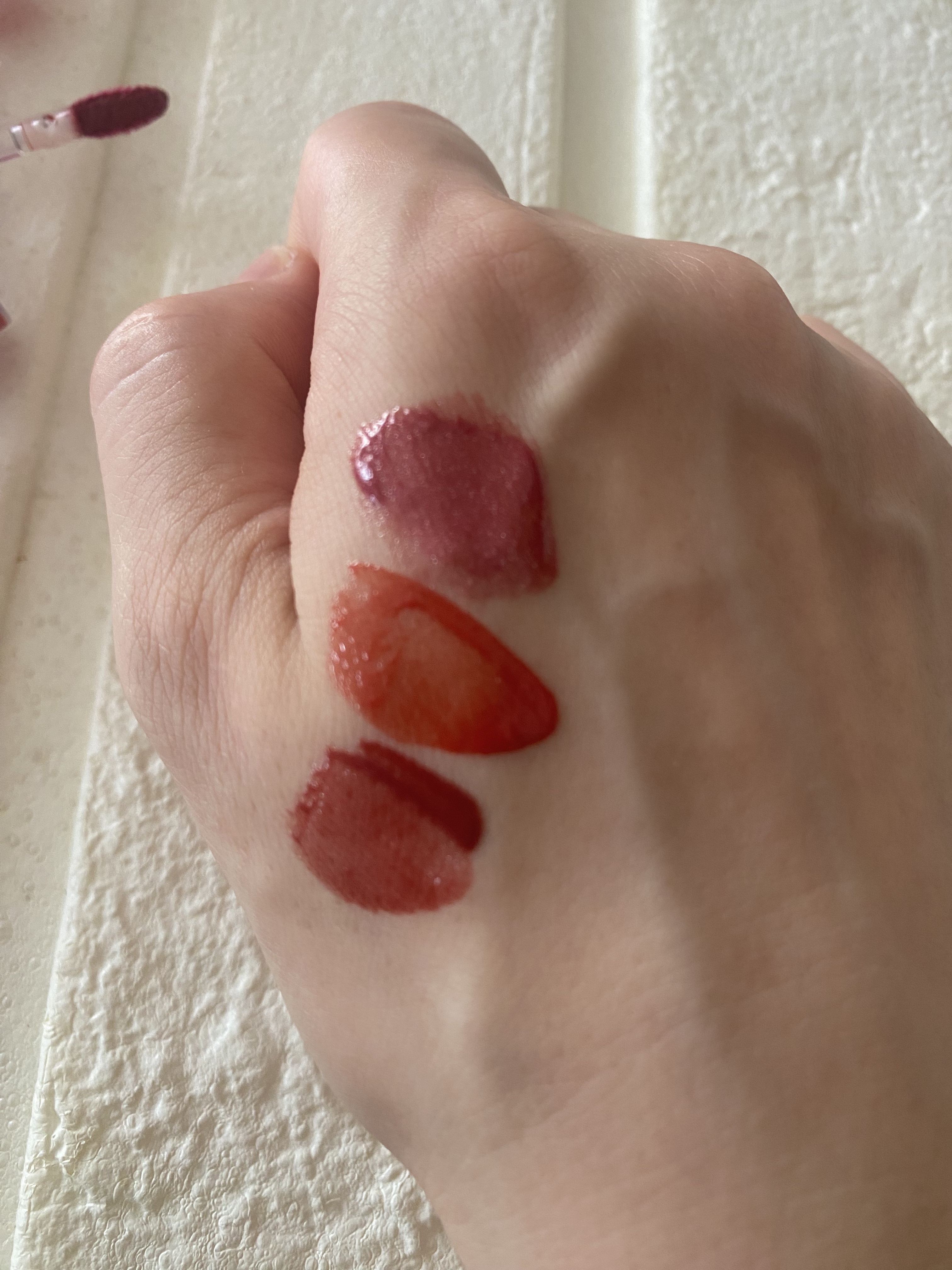ティントは、透明感のある発色で、カラーとみずみずしい質感が持続してくれるティント!塗るときにムラになりにくいのも良かった💡 バームは、ナチュラルな発色で、ツヤっとした光沢感がきれい✨ 保湿感がほしいときに使うのがおすすめ!