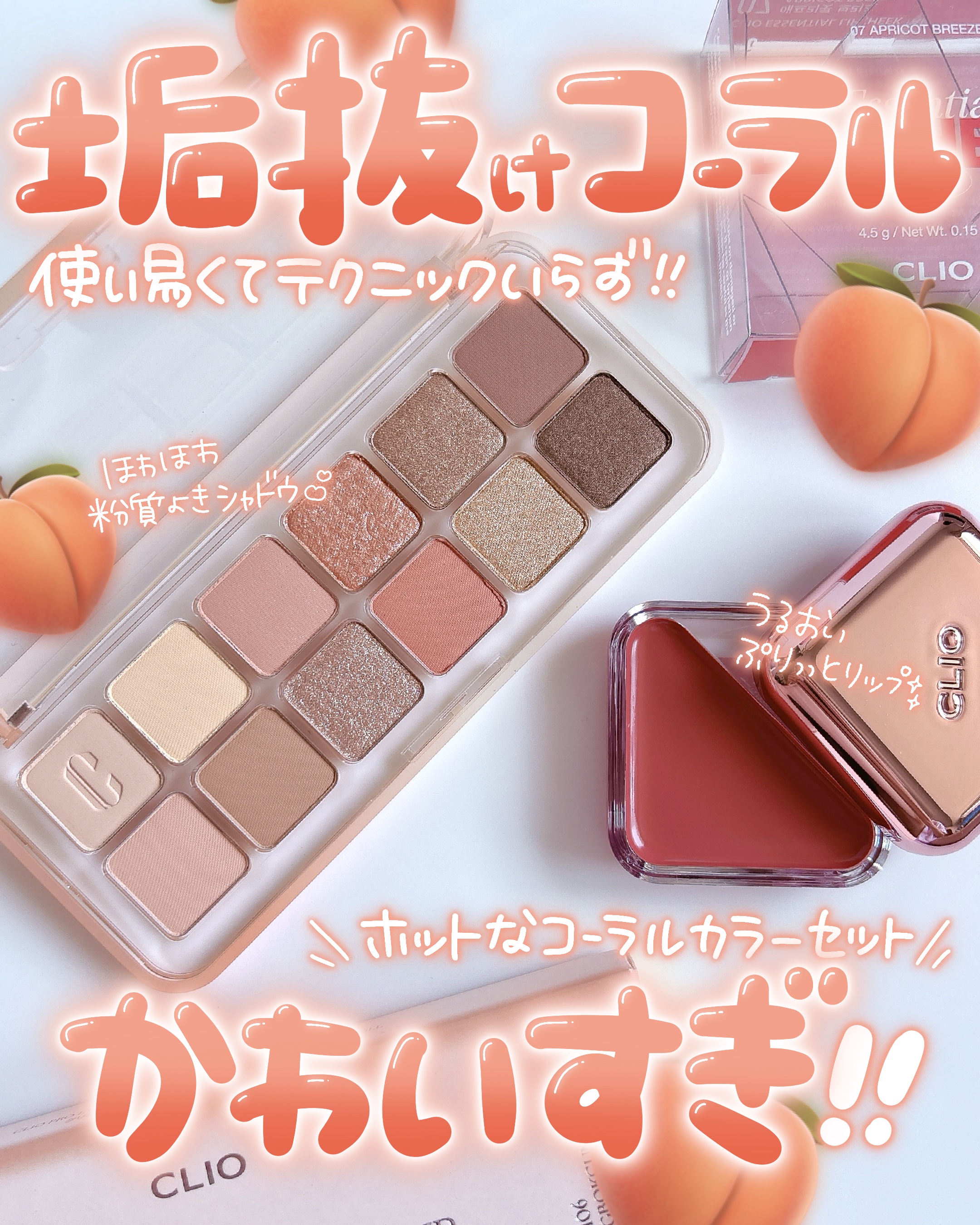 \CLIOから新作パレット🎨登場/CLIOプロアイパレットエアー106GBGコーラル🆕´-多幸感たっぷりのコーラルアプリコットカラーが詰まったCLIOの新作パレット🍑🌻イエベさんにおすすめだよ!!!夏にピッタリなカラバリで元気な印象になるよ🧡...