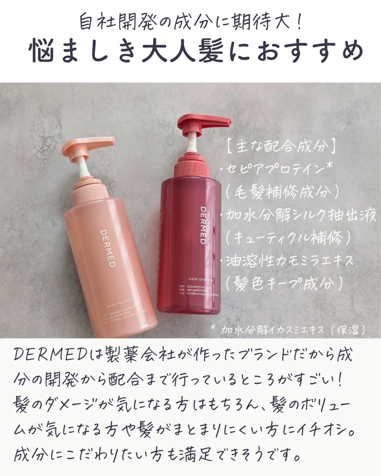 DERMED様@dermed_jpよりお声がけ頂きDERMEDの薬用シャンプーと薬用トリートメントを頂きました。DERMED(デルメッド)は創業60年の三省製薬から産まれました。長い間美容成分開発メーカーとして、様々な成分を生み出し、デパコス...