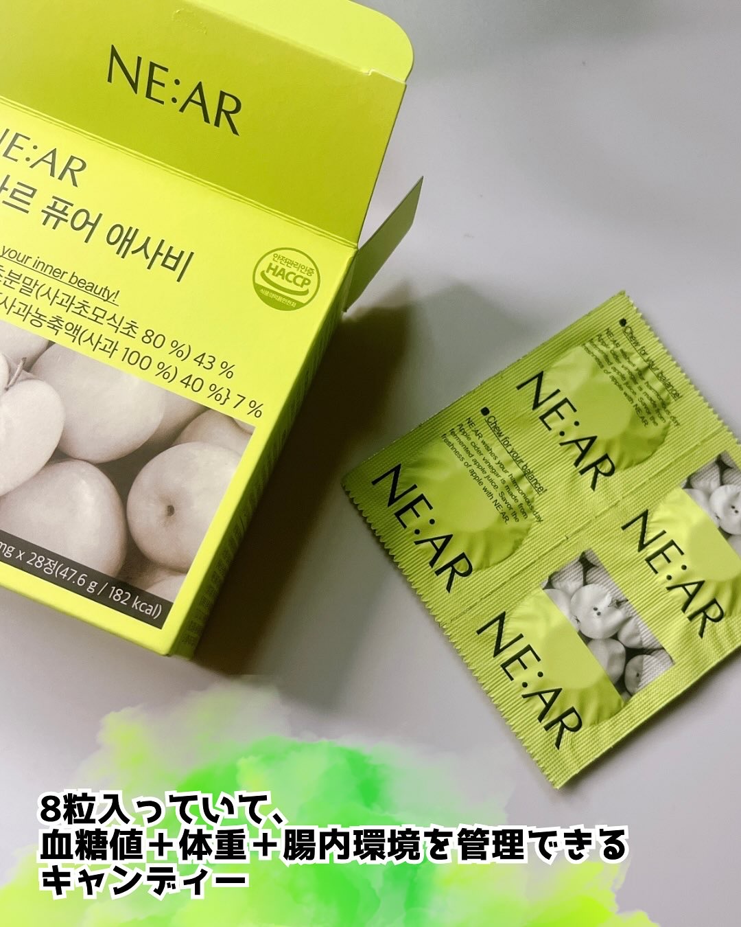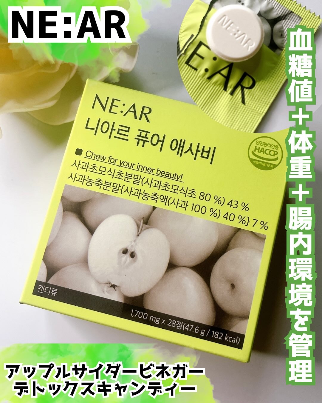 - 噛んで摂る韓国流タブレット型サプリ。韓国で健康サポート成分として人気急上昇中のアップルサイダービネガーに加え、体づくりに欠かせない9種の必須アミノ酸やバナバ葉抽出粉末を配合し、日々の健康と美容をサポートします。