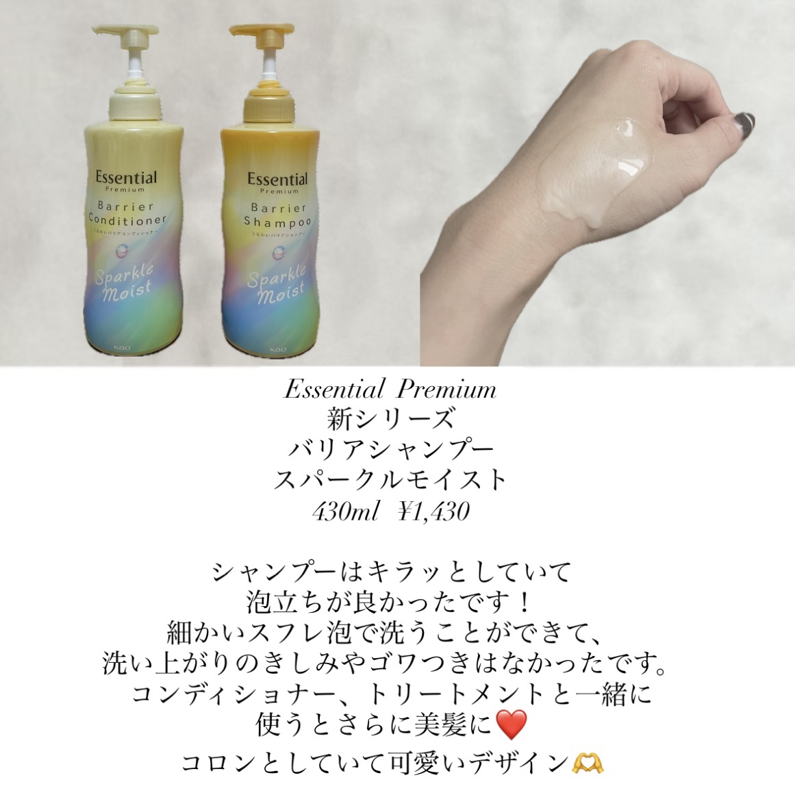 エッセンシャル エッセンシャルプレミアム バリアシャンプー・コンディショナー スパークルモイスト | 1,430円〜 |