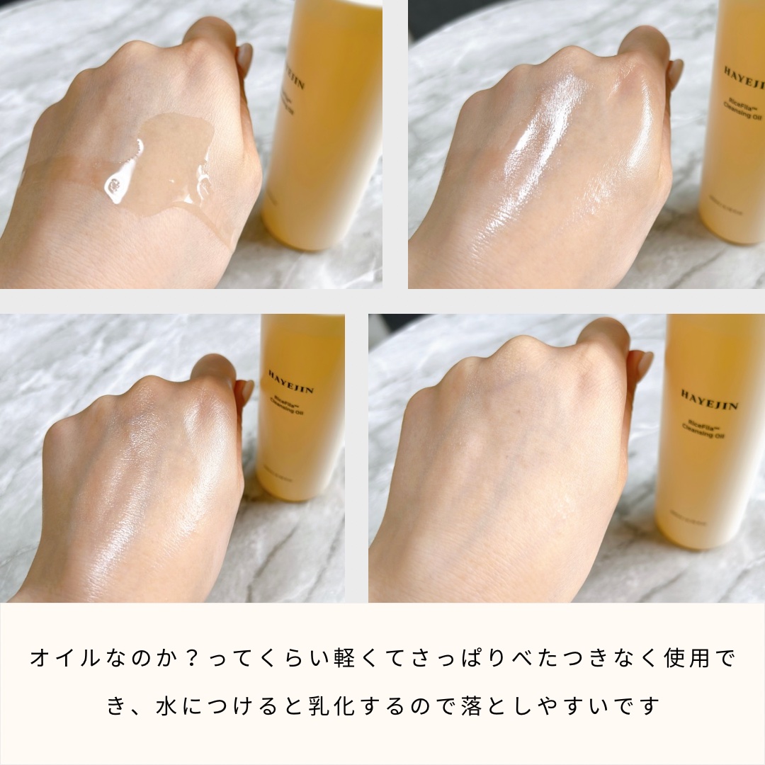 HAYEJINライスフィラ™クレンジングオイル✨米ぬかオイル100,000ppm配合✨オイルなのにぬるつかず軽やかで、さらっとしたテクスチャー🍀洗い上がりもつっぱらず、しっとりとした使い心地です✨植物由来のオイルだから、敏感な日にも使えるのは...
