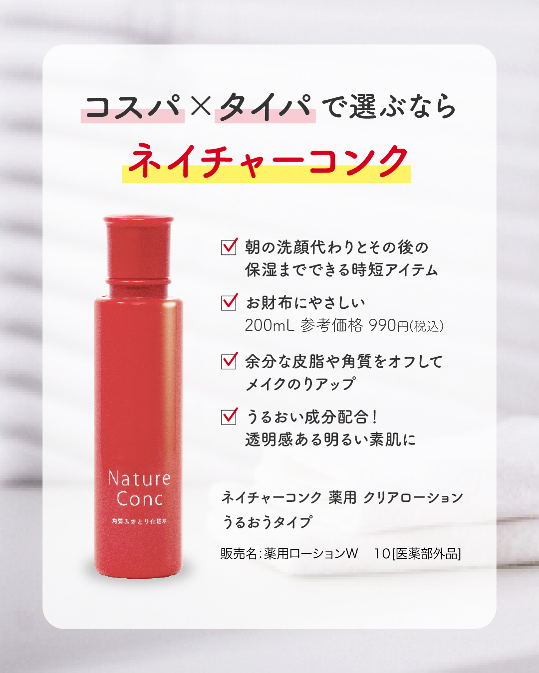 もっと見るおすすめアイテムネイチャーコンク×拭き取り化粧水