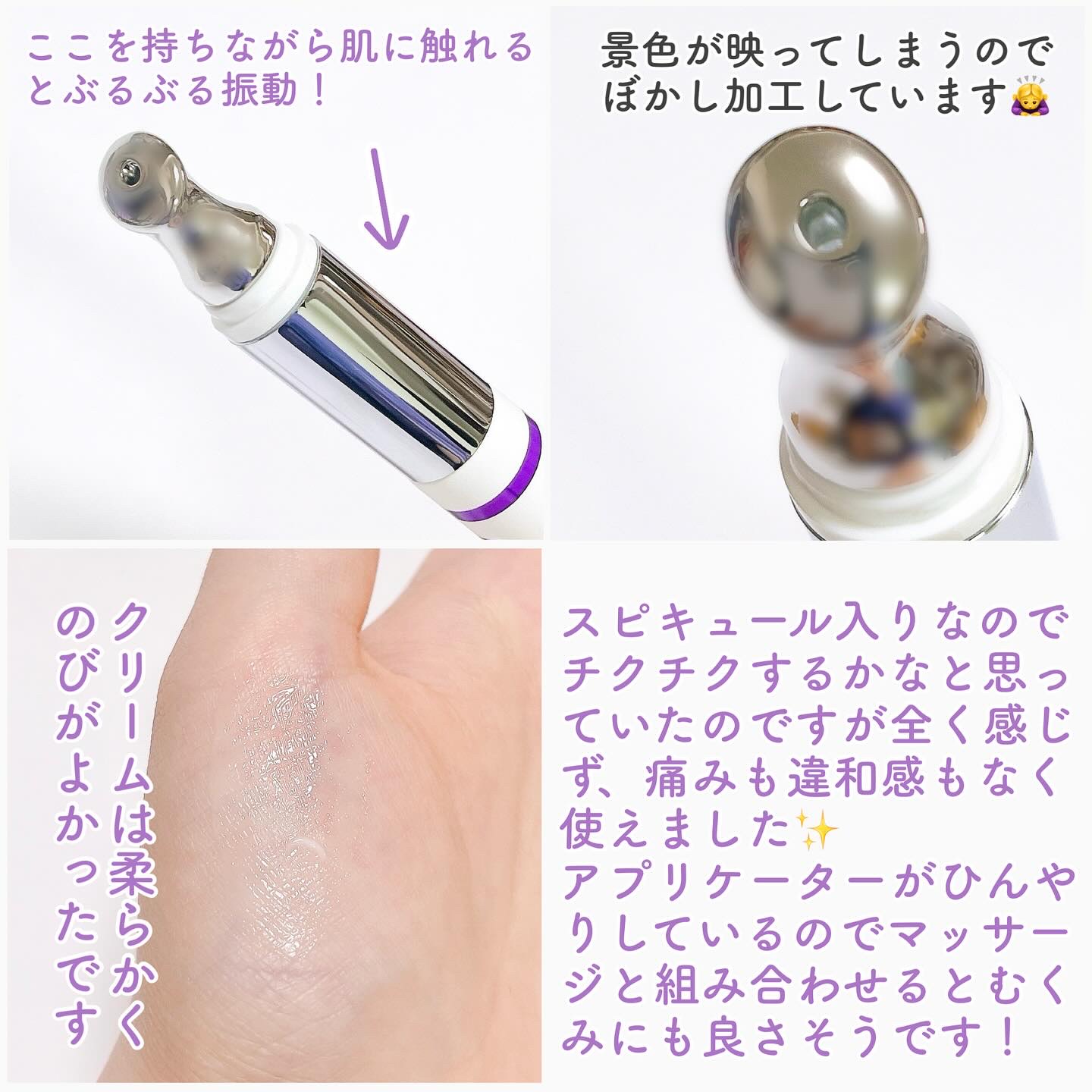 #PRLIALUSTER様の💜バクチニードルショットダークケアオートアイクリーム高周波オート振動で、1分間に15,000回振動👀✨バクチオール×スピキュールのハリ・弾力・くすみにアプローチしてくれるアイクリーム✨クリームは伸びが良く、チクチク...