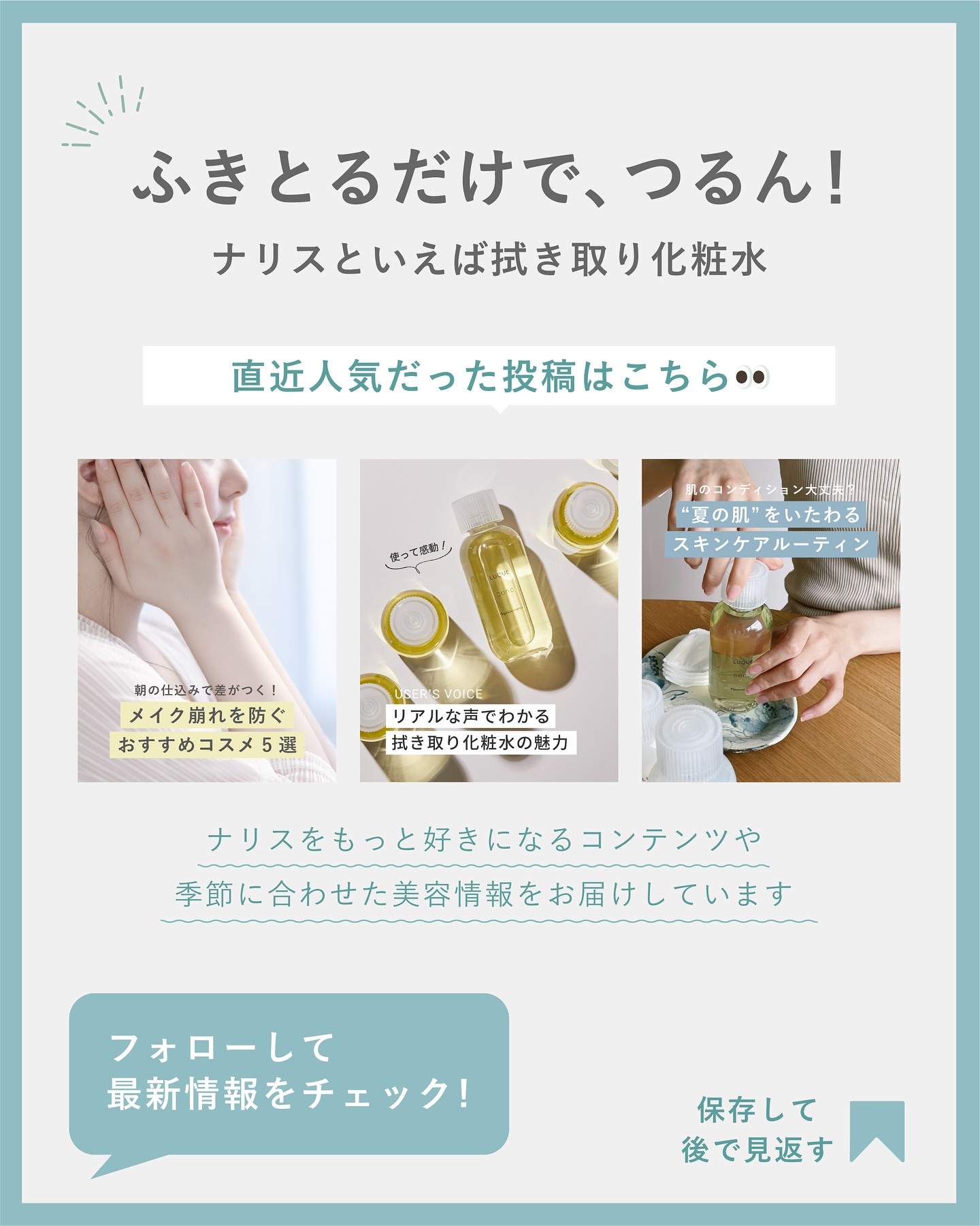 夏に紫外線を浴び、乾燥を感じやすくなる今、改めて見直したいのが日々の保湿ケア。潤いを守る肌をつくるには、「除く+与える」ケアが鍵🔑まず角質をしっかりオフし、その後にたっぷりの化粧水で水分を与えることで、肌が水分をしっかり保持できるように。肌の...