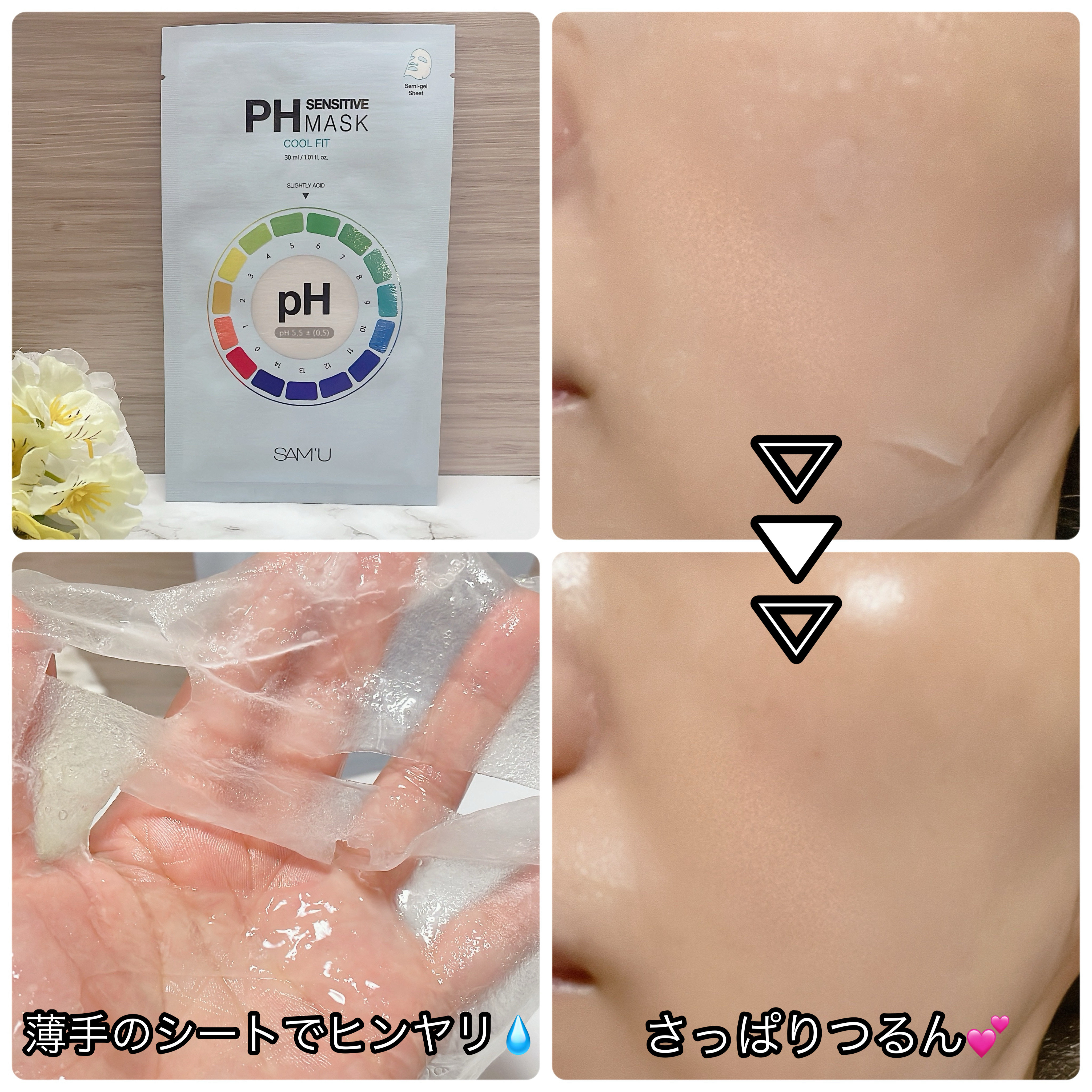 SAM'UPHセンシティブマスク6種比較!💙PHセンシティブマスクアクアフィット乾燥しがちな肌にたっぷりの水分を与え、バランスを整えるシートマスク!ヒアルロン酸(保湿成分)、アラントイン(整肌成分)、パンテノール(保湿成分)が肌を潤し、穏やか...