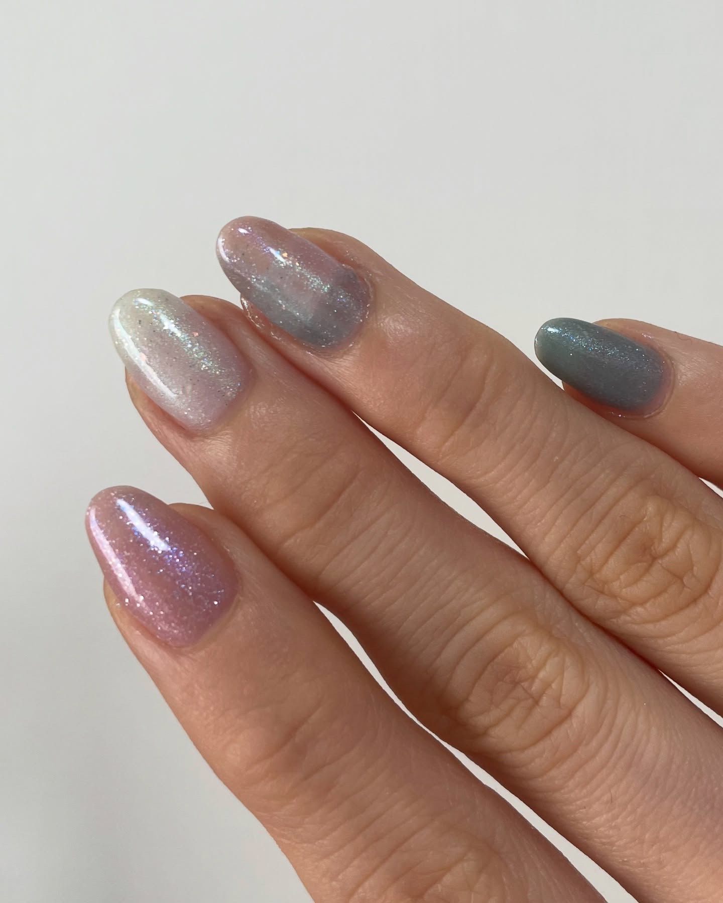 ファンタジーな夜空ネイル🌙【使用ポリッシュ】親指・中指・薬指/ニュアンス塗り◆paネイルカラープレミアムE011親指・中指・薬指・小指/ベースカラー●paネイルカラープレミアAA241親指・小指/爪先ポイント塗り、人差し指ラメグラデ●ちふれネ...