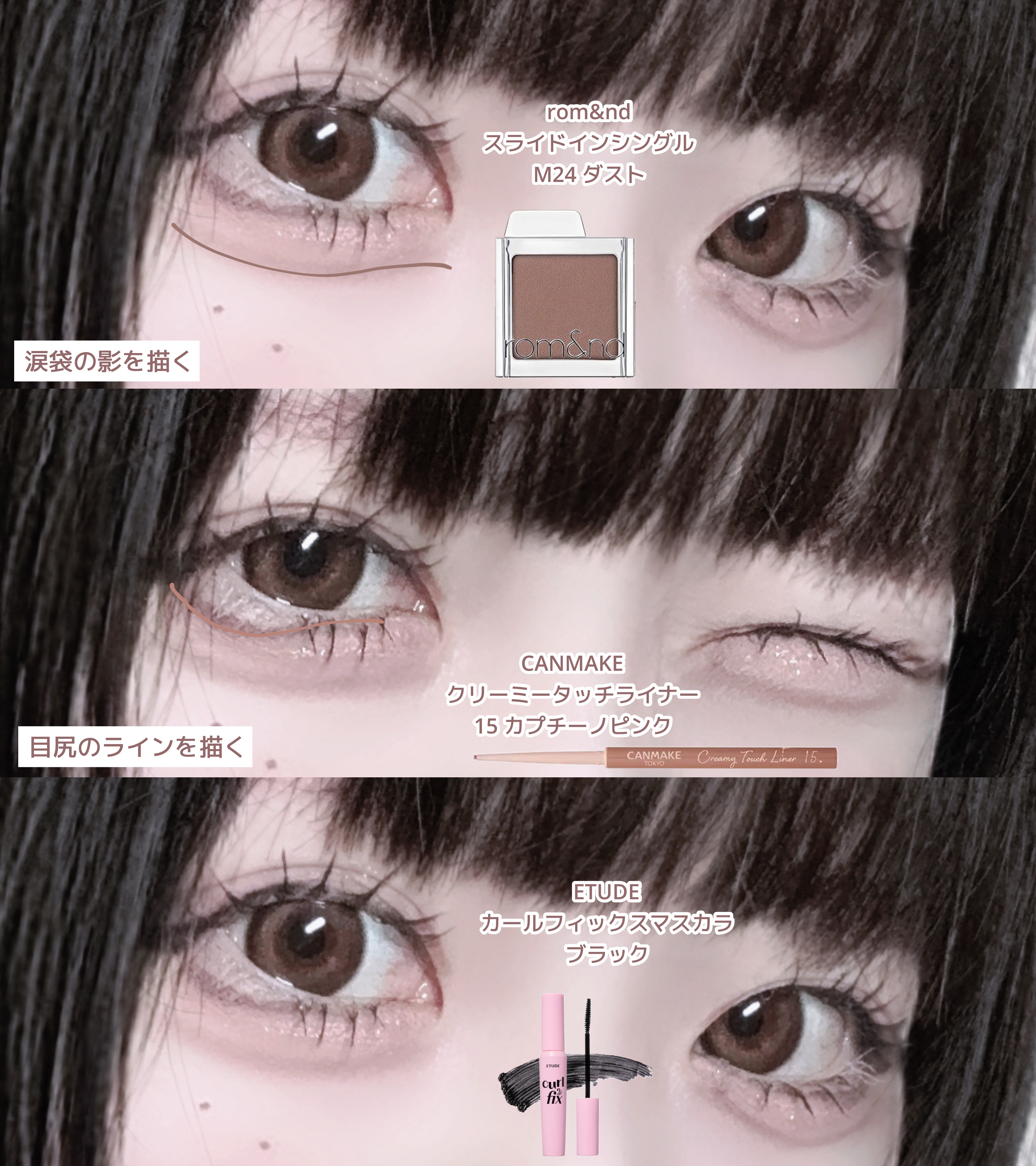 ❁︎❁︎一重、奥二重さん向け色素薄い系メイク❁︎❁︎⸜黒髪さんに似合う⸝裸眼でほんのりニュアンスピンクの色素薄い系メイク𓂃𓈒𓏸CANMAKE⚪︎パーフェクトスタイリストアイズ23アーモンドカヌレ⚪︎シルキースフレアイズ02ローズセピアニ...