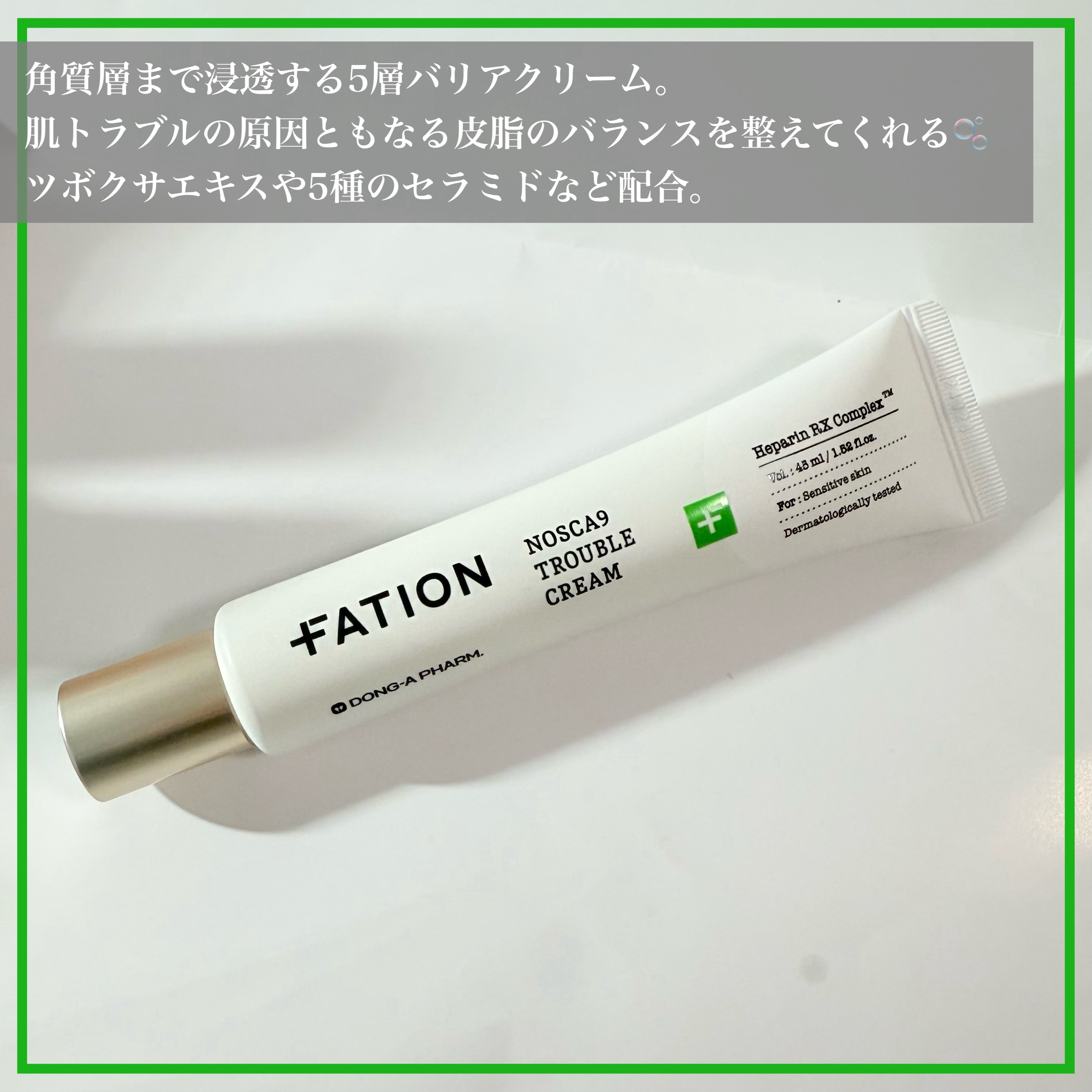 #FATION#ノスカナイントラブルセラム#ノスカナイントラブルクリーム#提供90年を超える韓国TOPの製薬会社の東亜製薬で9年間研究開発して作られたFATION(パティオン)のノスカナインラインです💚🌿パッケージが爽やかでオシャレです♡ニキ...