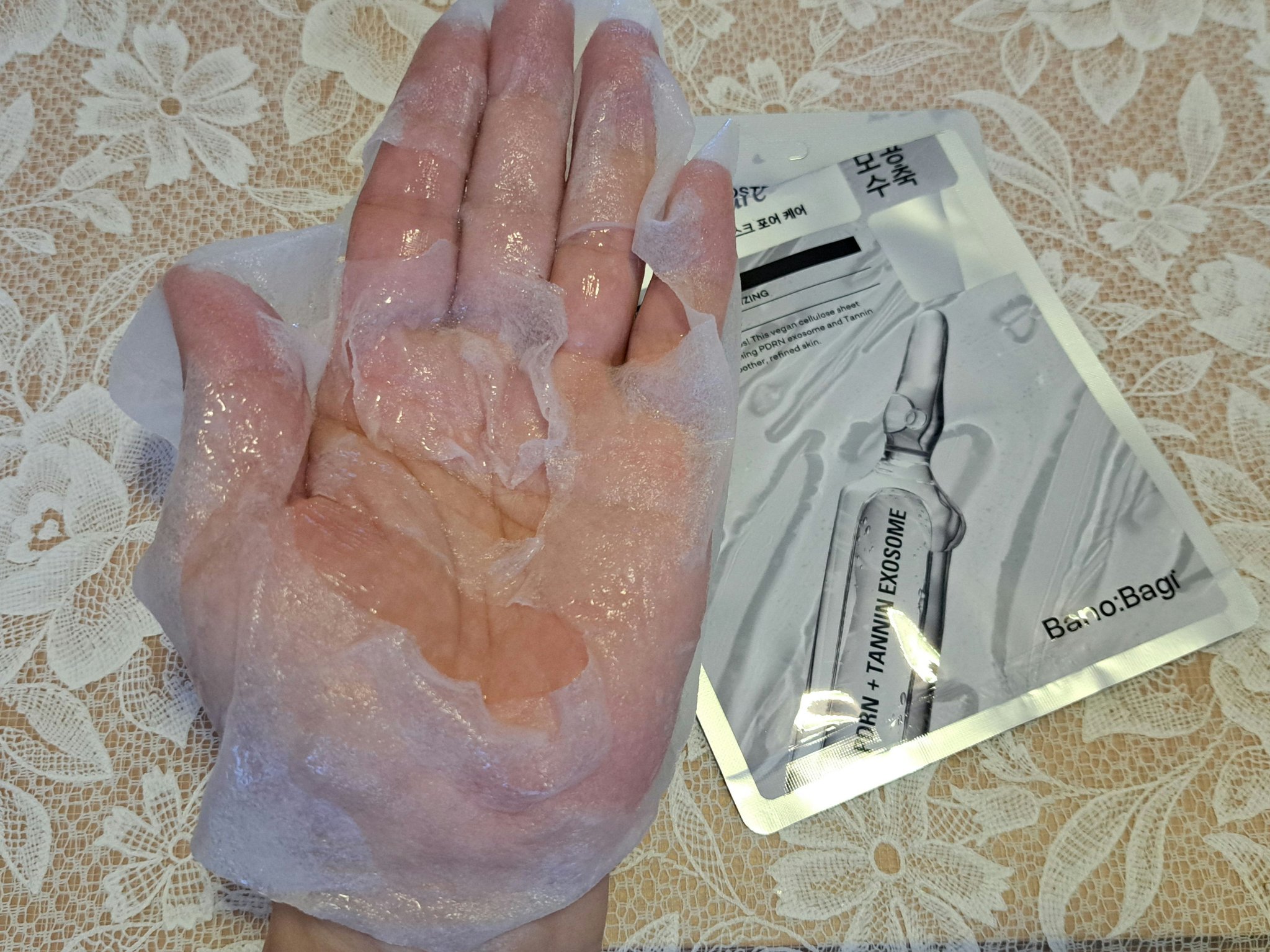 スキンブースターマスク4種類(モイスチャー、ポアケア、ブライトニング、ファーミング)BANOBAGI様からいただきましたPDRNxエクソソーム配合のフェイスマスク洗顔後トナーで整えてから使用しますシートはリヨセルと竹の長所を組み合わせたという...