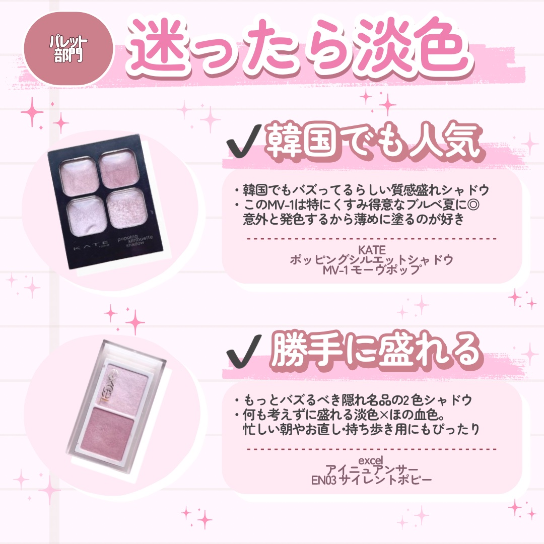 盛り耐性なし×春夏跨ぎの愛用アイシャドウ4選✼••┈┈••✼••┈┈••✼••┈┈••✼••┈┈••✼◆ケイトポッピングシルエットシャドウOR-1アプリコットポップ¥1,540◆SNIDELBEAUTYアイデザイナーn01CoralCharm...