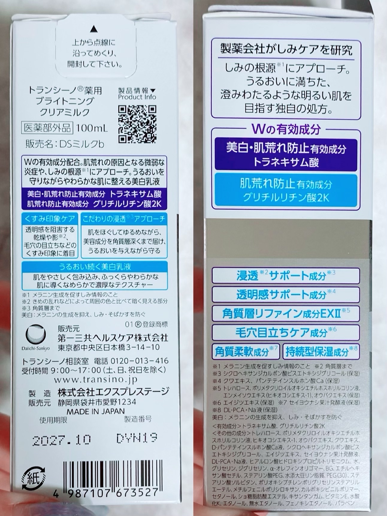 トランシーノ 薬用ホワイトニングクリアミルクEX | 生産終了 |