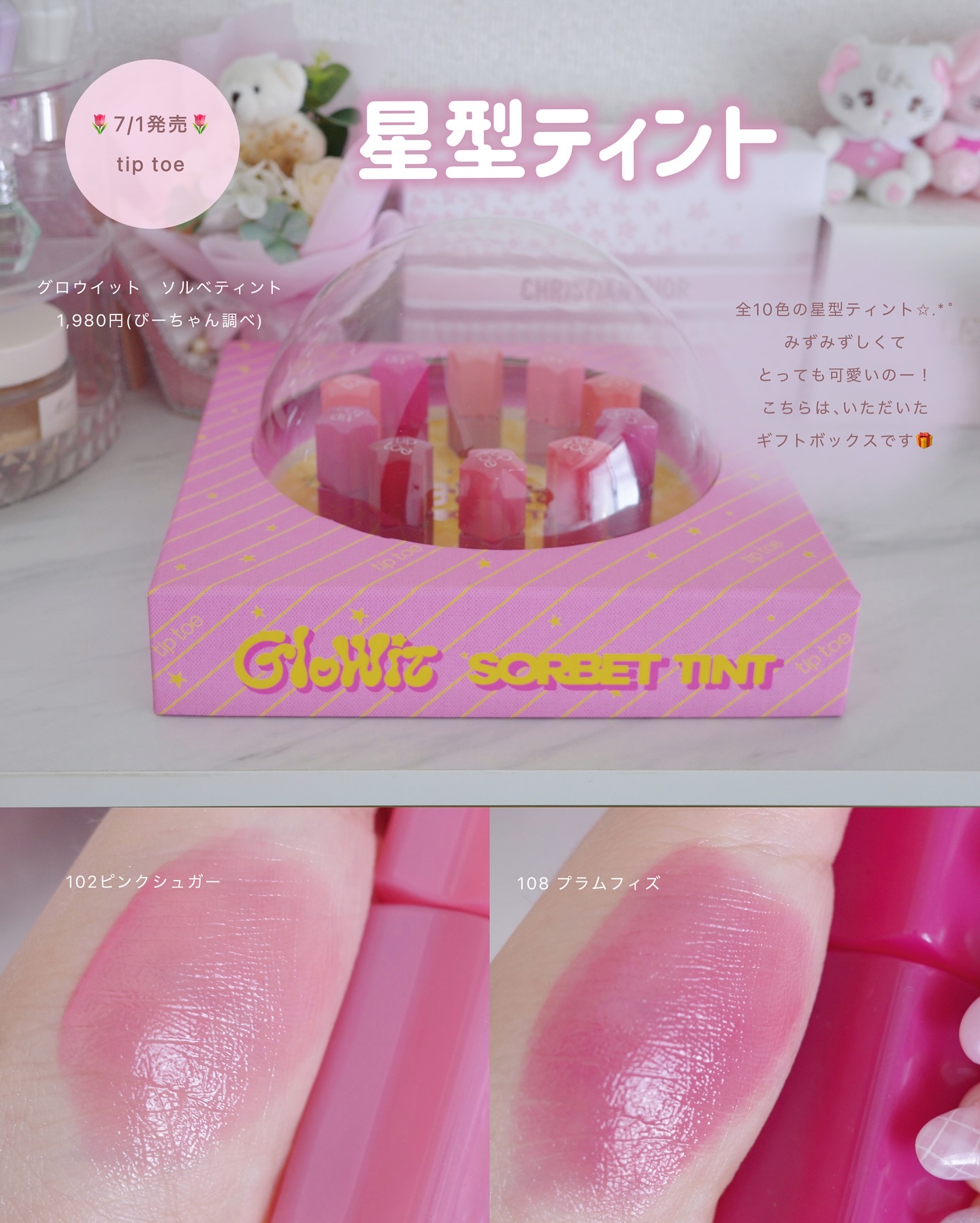 | リップティントランキング第3位 | 重ねて塗っても、ちゅるんと透け感が残って明るめカラーがとっても映える…💕色残りも◎ | 詳細を見る | ||