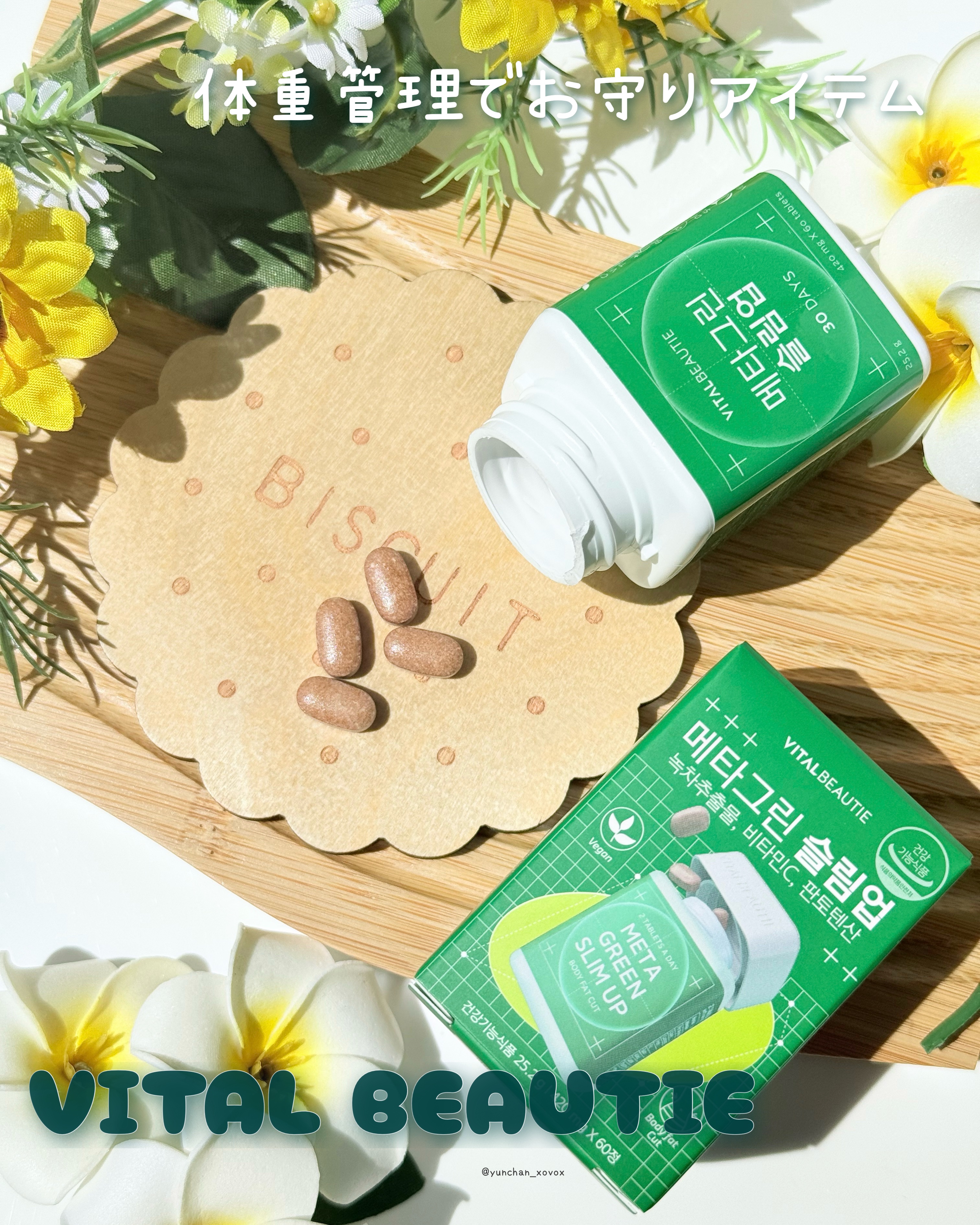 スッキリ🍀ダイエットサポート💚体脂肪を減らしたい🙌VITALBEAUTIE(バイタルビューティー)の“メタグリーンスリムアップ”少し前から愛用中韓国旅で購入するもよく売り切れてる😳身体に負担かけない安心✨安全なサプリ😌🍵油っぽさが気に...