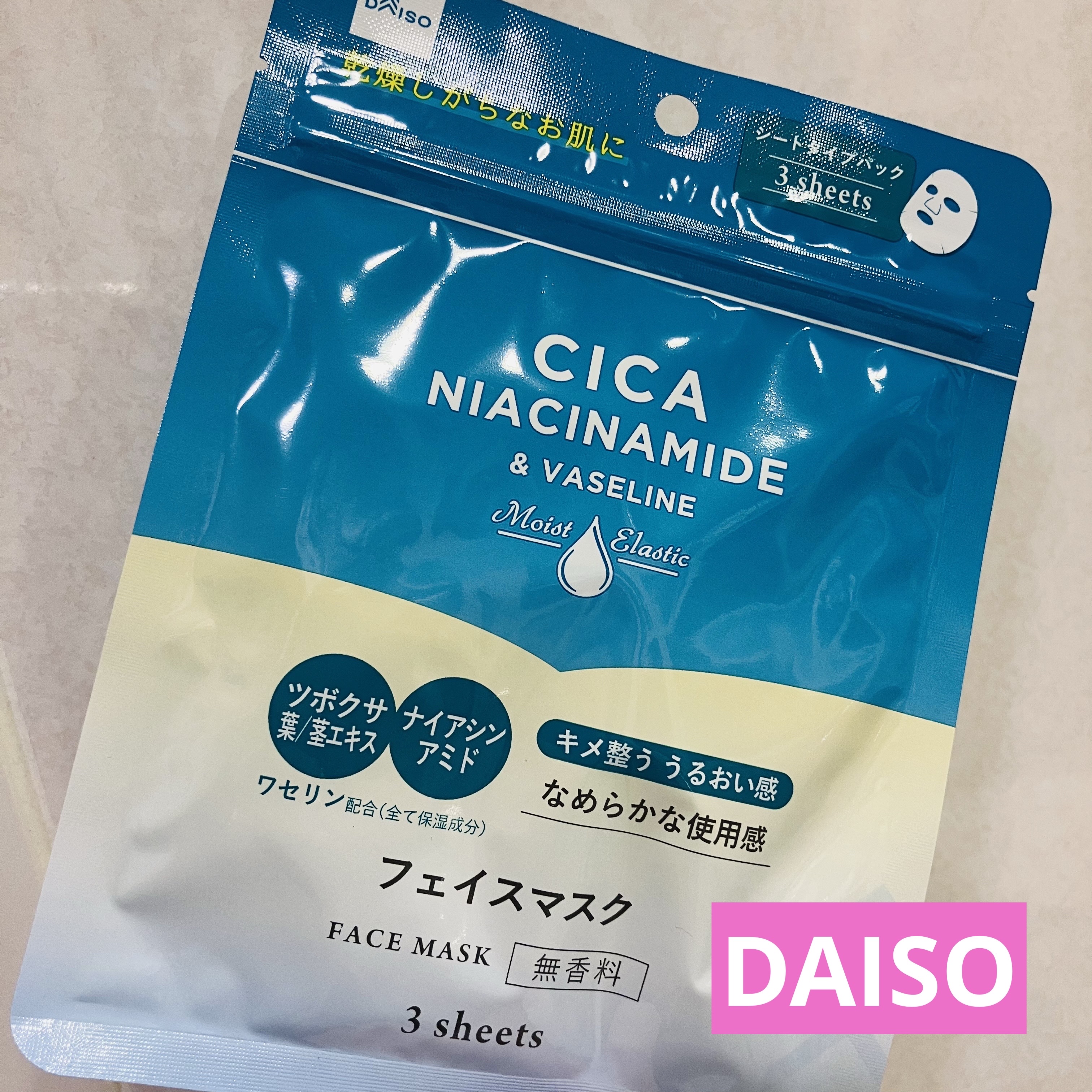 🩷DAISOフェイスマスクワセリン配合CICAナイアシンアミドPlus🩷え?3枚で100円?って2度見しちゃいました。CICAとナイアシンアミドが入っててこの値段?ワセリンも入ってるから乾燥肌の私に合うかも。と思い購入。使ってみたら想像よりず...