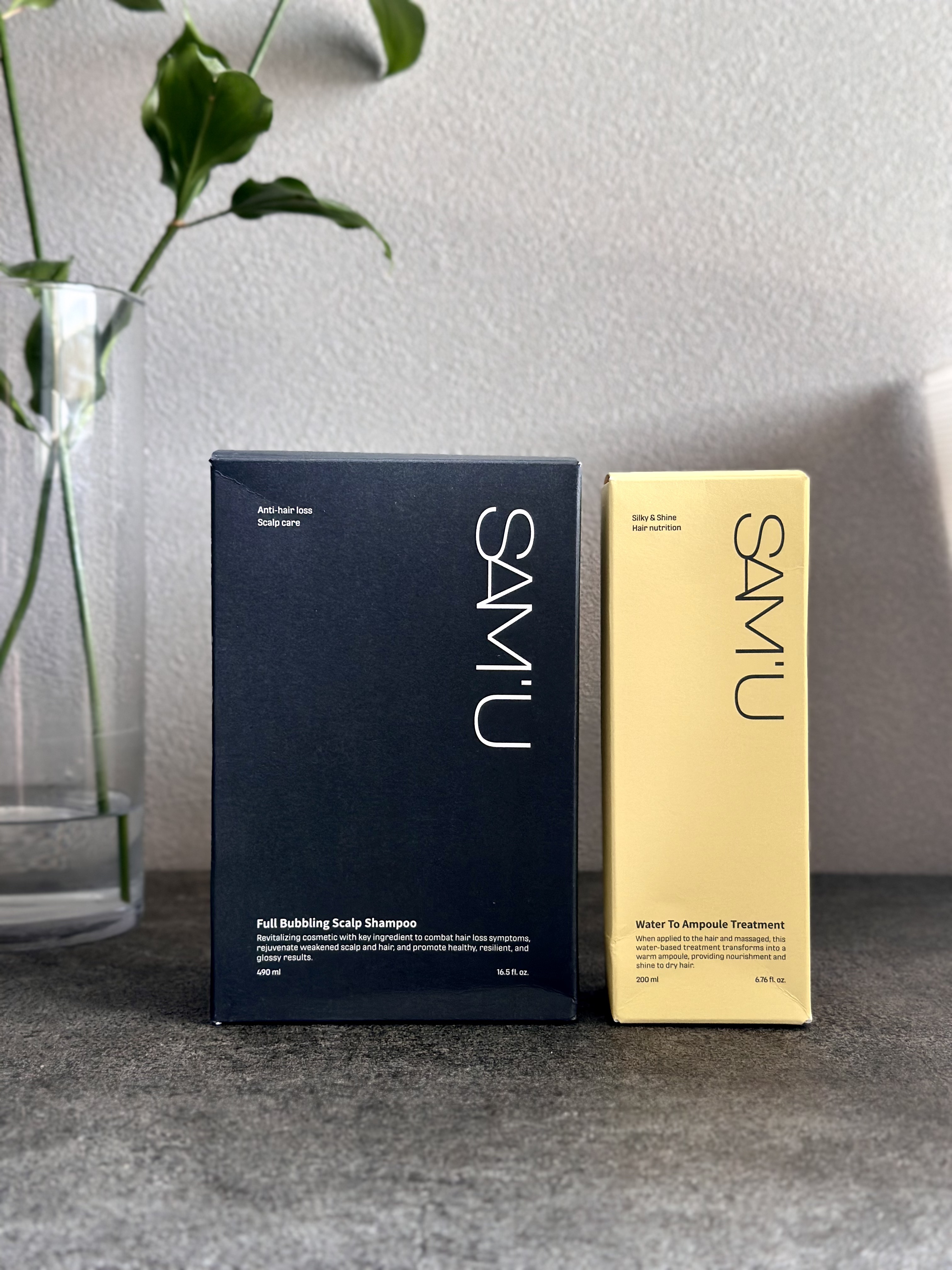 _SAM'UFullBubblingScalpShampooサミュフルバブリングスカルプシャンプー490ml/¥4,180(Qoo10公式より)WaterToAmpouleTreatmentウォータートゥーアンプルトリートメント200ml/¥...