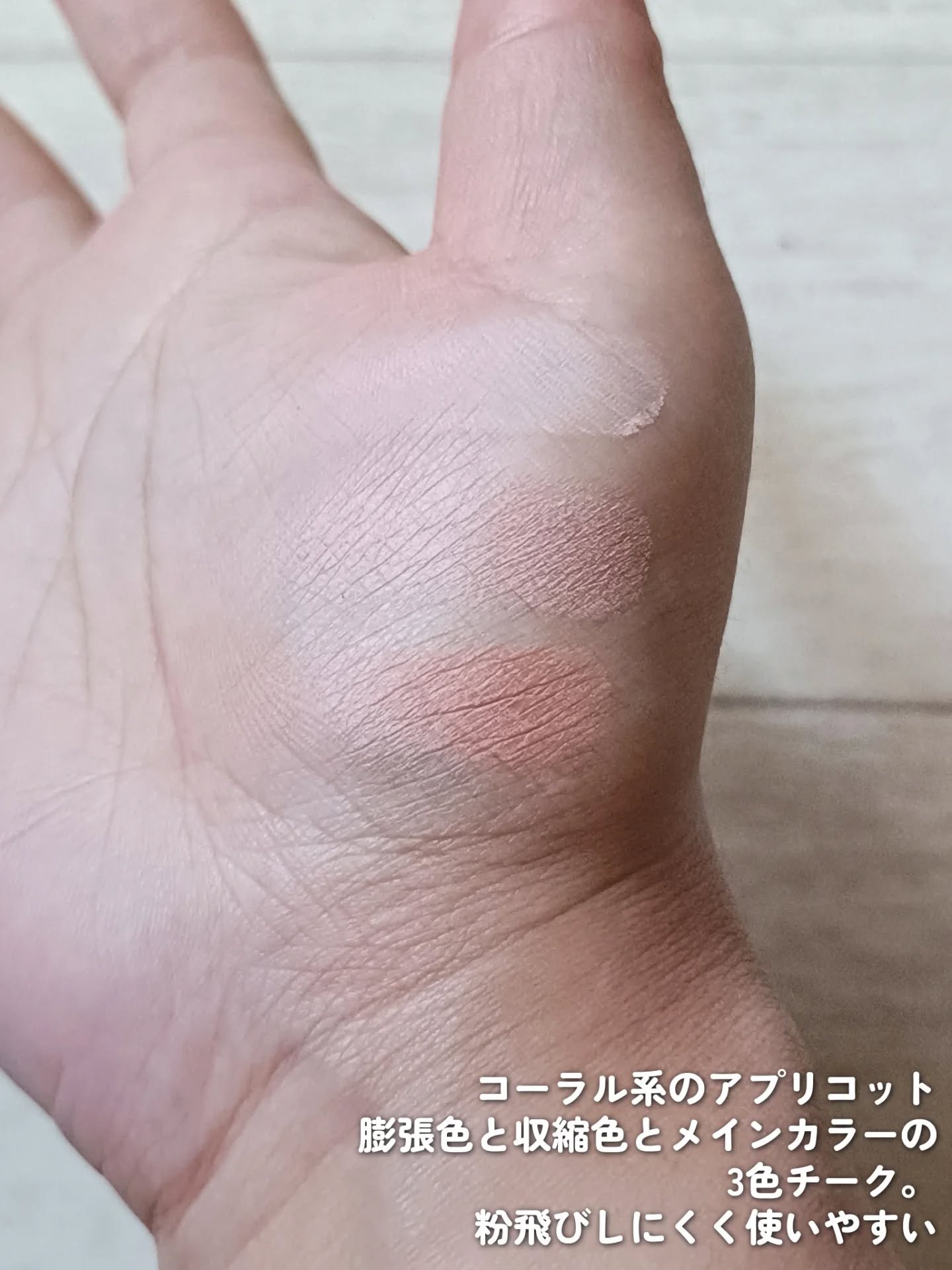 ✴︎TIMAGE3色チークパレット03アプリコット系翡翠のような高級感あふれるパッケージが美しいTIMAGEのチークパレット。3色のチークがセットされており、血色感と立体感を同時に演出できる便利なアイテム。上が膨張色、右がメインカラー、左が収...