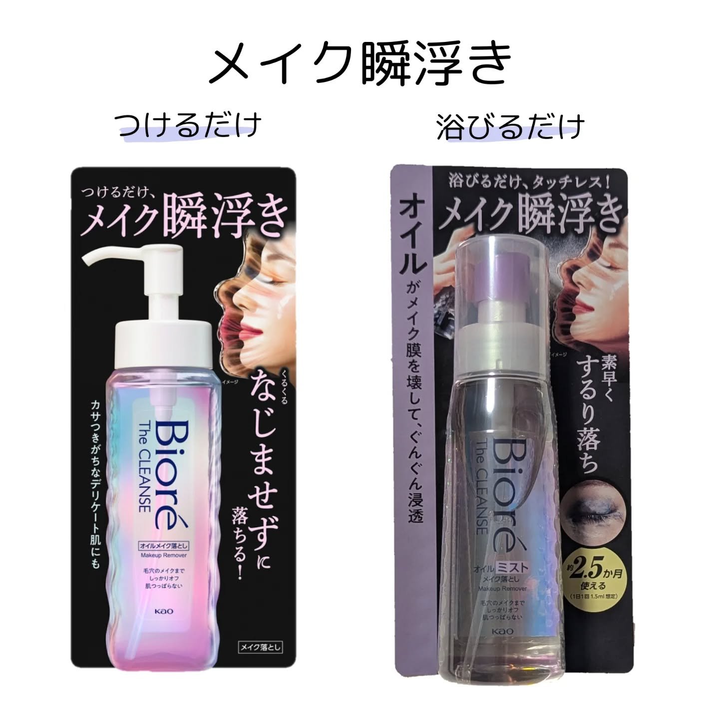 【花王株式会社】さまから商品を提供していただきました\ビオレの新作!/浴びるだけ、メイク瞬浮きビオレザクレンズオイルミストメイク落としメイク瞬浮きブースト技術でオイルが広範囲に一気に広がり、毛穴に入り込んだ化粧下地・ウォータープルーフマスカラ...