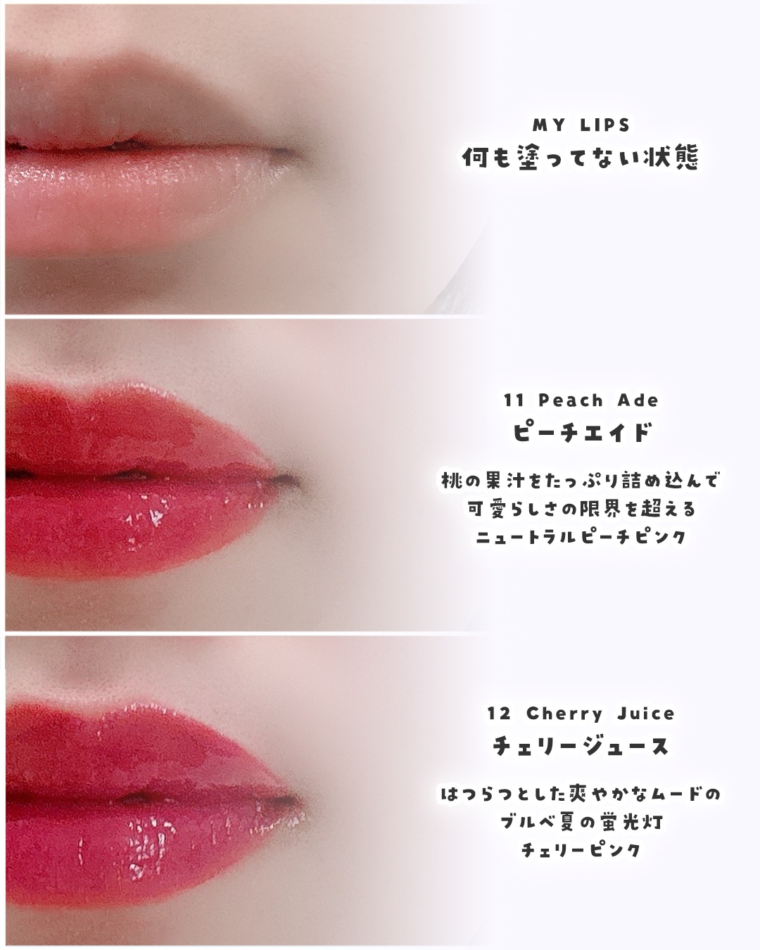| リップティントランキング第135位 | 透け感のある発色が美しく 塗った後のツヤ感と保湿力も◎ 色展開が天才的で全色可愛すぎる…! | 詳細を見る | |