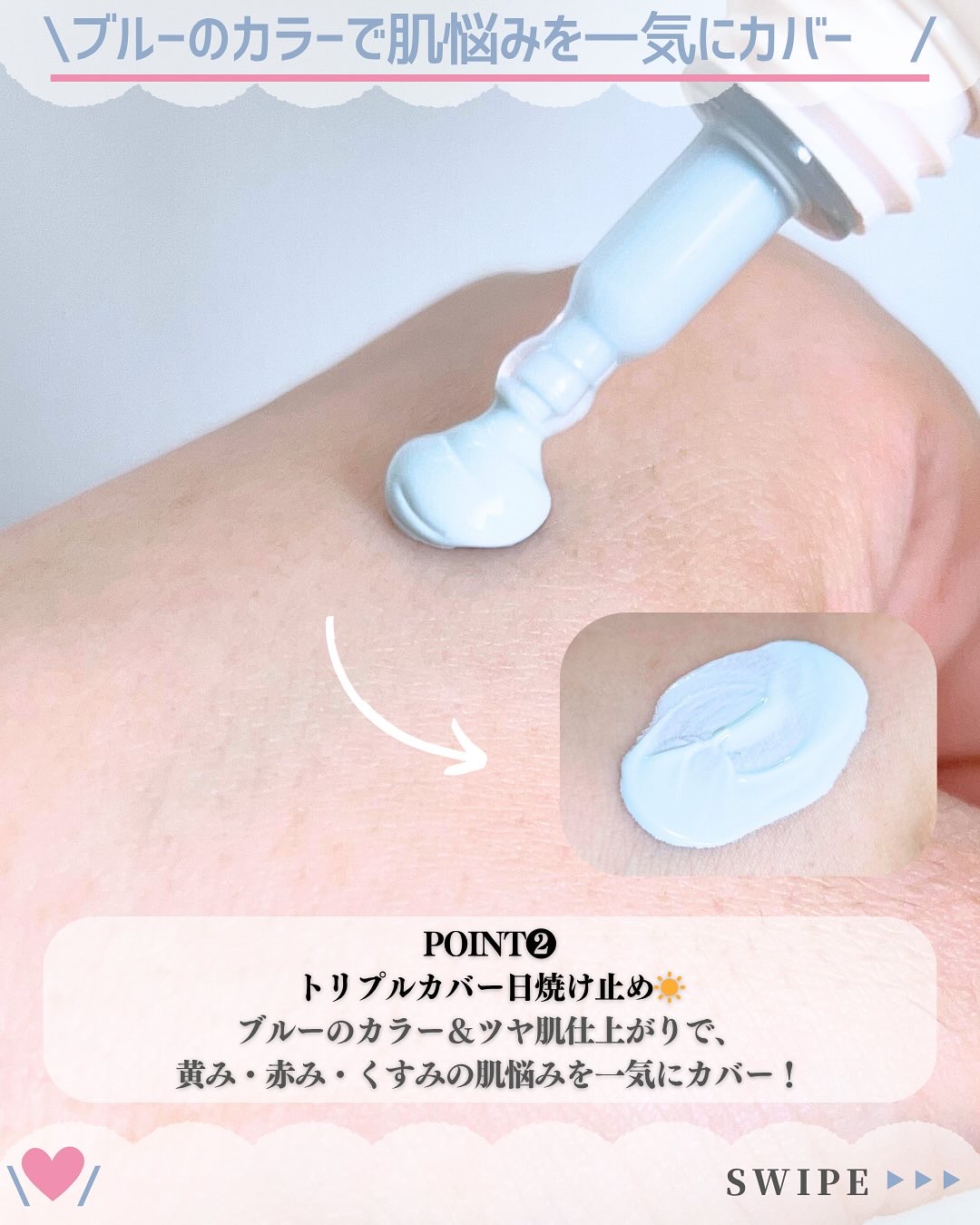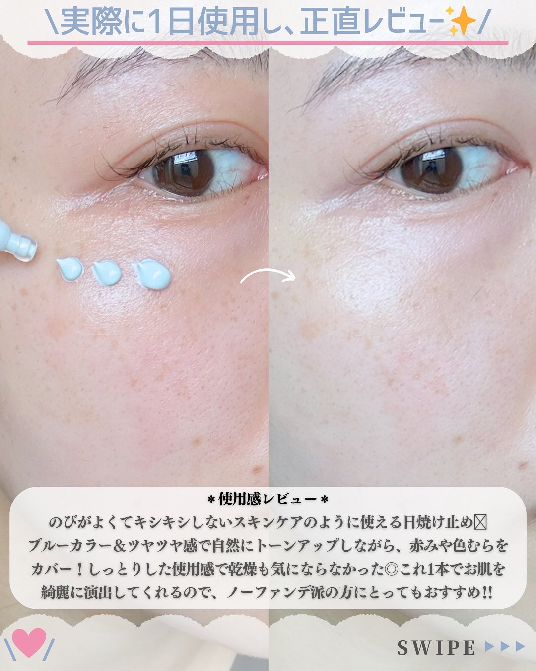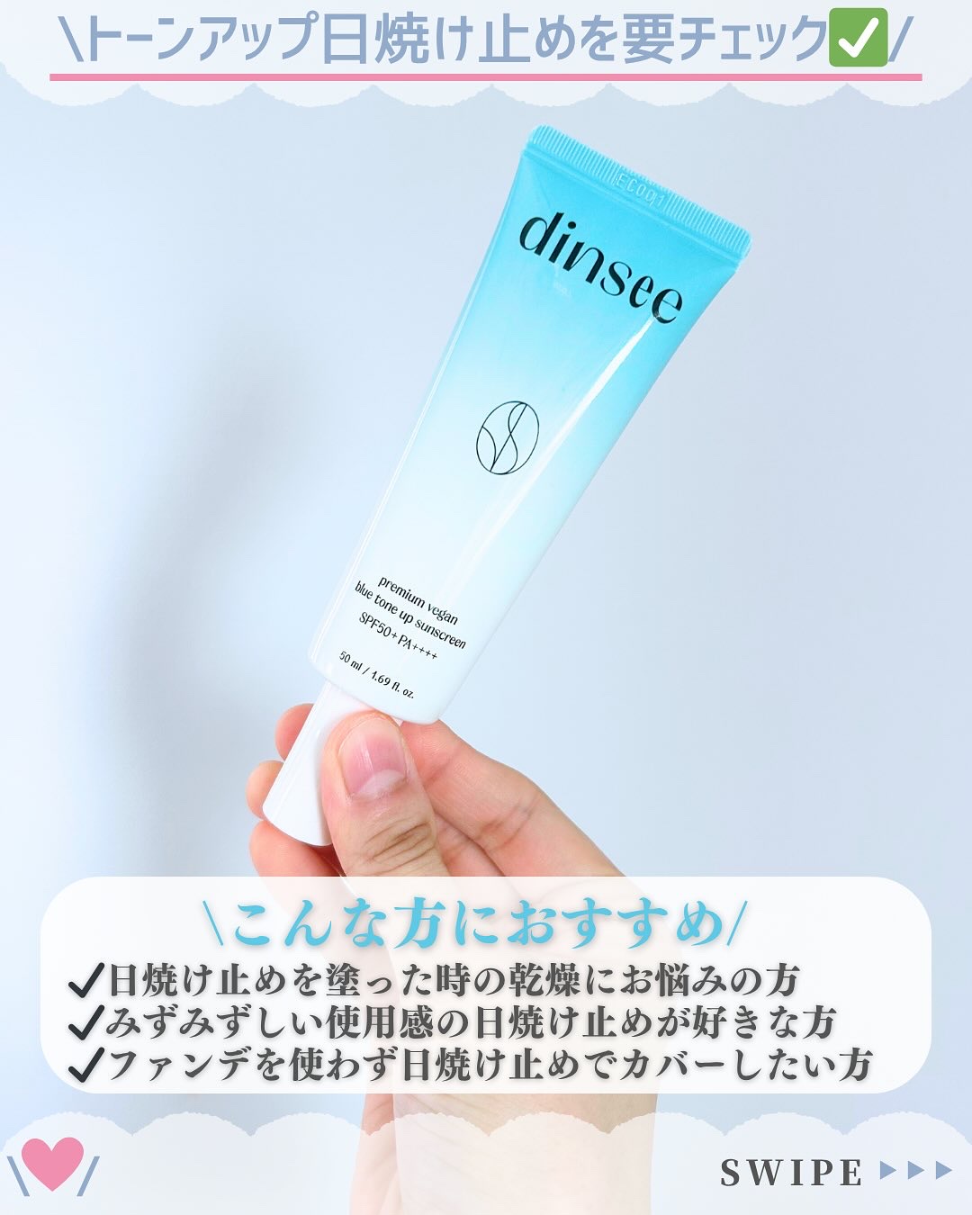 dinsee(ディンシー)プレミアムビーガンブルートーンアップ日焼け止めSPF50+PA++++でしっかり紫外線対策できるのに、使い心地はびっくりするくらい軽やか😳💙塗った瞬間から水分感たっぷりで、乾燥知らずのうるおい仕上がり。重さやベタつき...