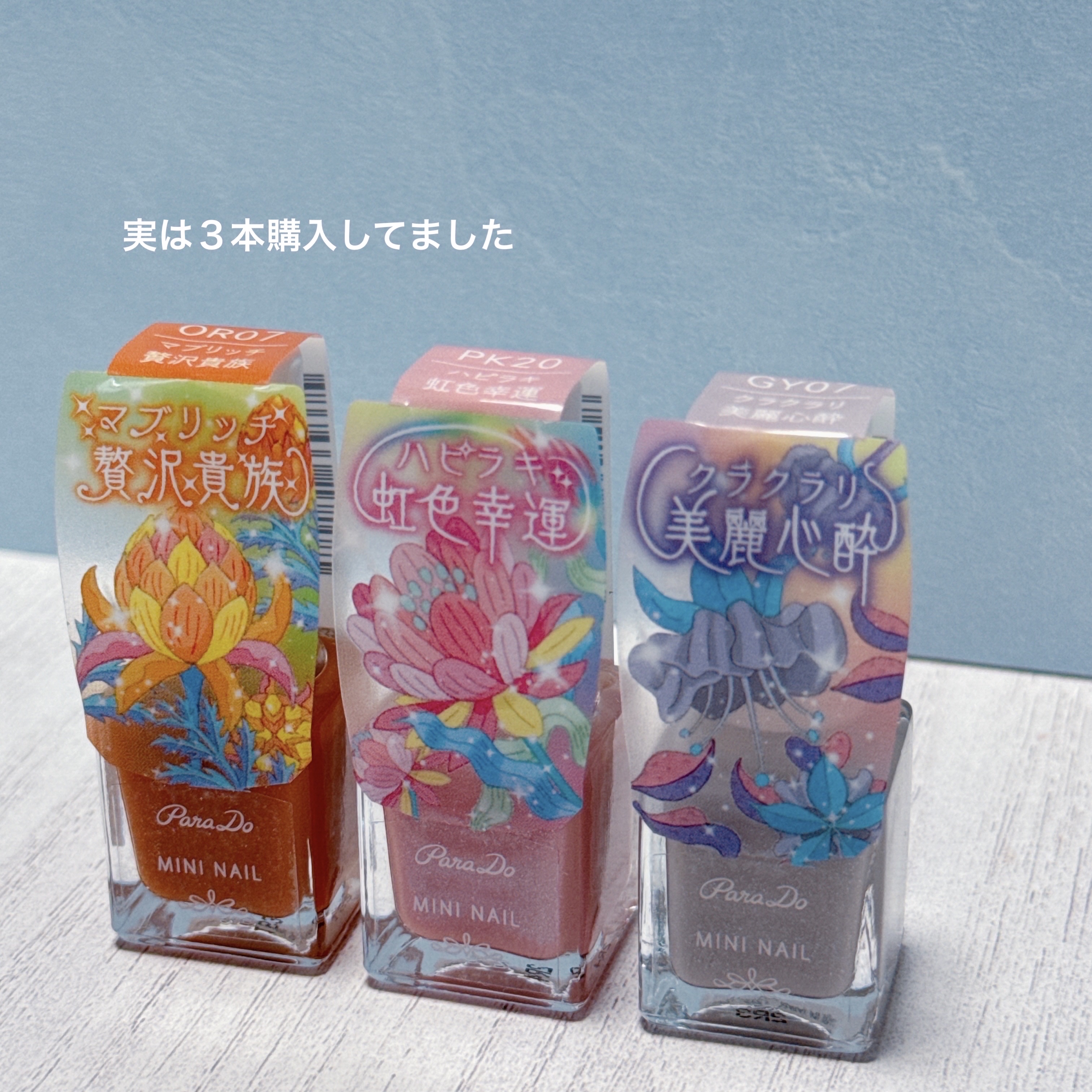 先日の塗るだけ簡単ネイル💅✨️また久しぶりにパラドゥさんのネイルを購入したのよ🎶急いでる時も速乾やし塗りやすいしマジ助かる🙏使用したのはパラドゥネイルファンデーションPO02ピンクオークル¥550パラドゥミニネイルPK20虹色幸運ハピラキ¥3...