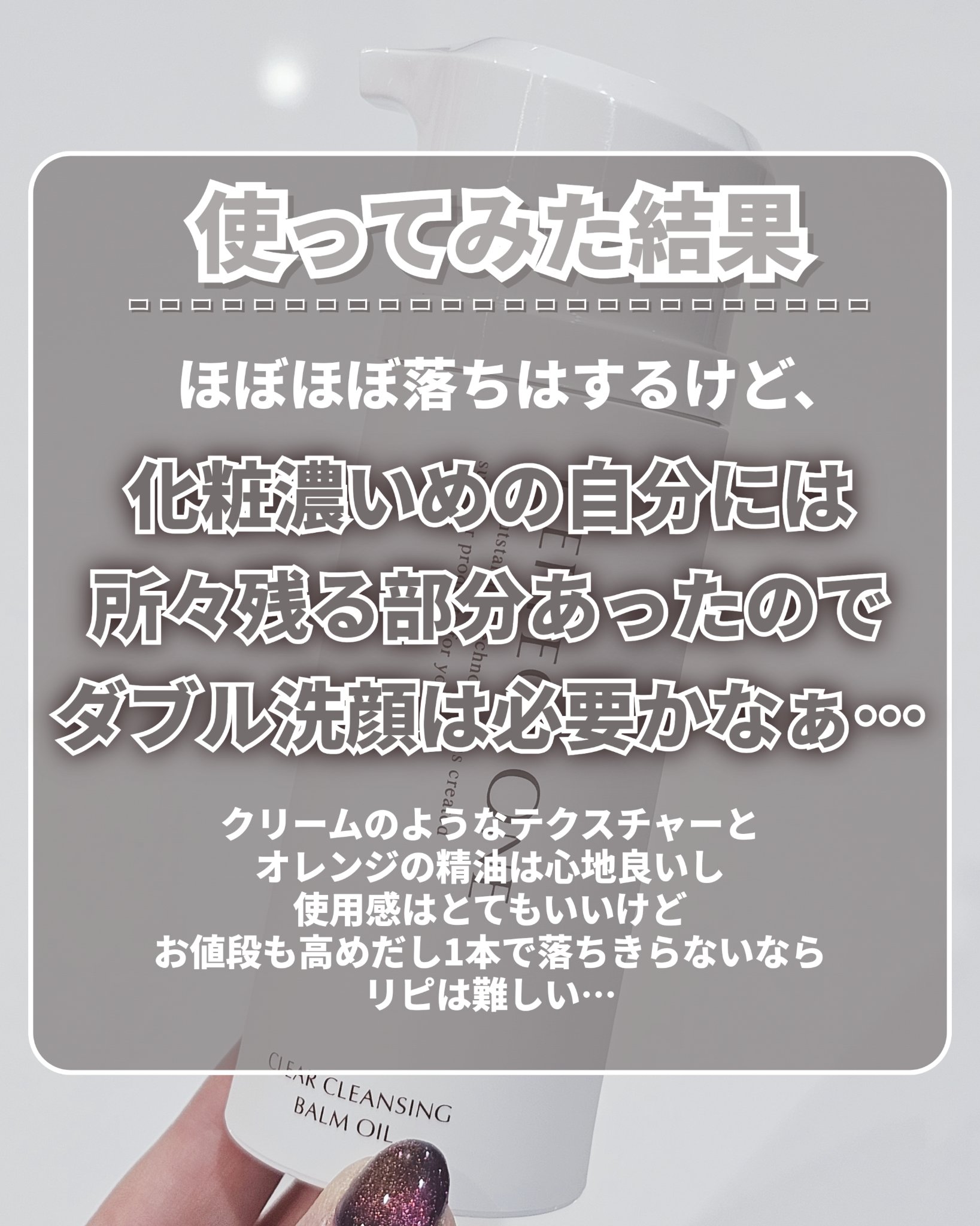 バームとオイルの良いとこどり! 濡れた手でもメイクを落とせるため、お風呂の中でも使用できます✨✨ 何よりポンプタイプなのでとても使いやすい! スパチュラなどもいらないので嬉しいです🙏 Lemon Squareを通じて、【新日本製薬】から【クリアクレンジングバームオイル】を提供してもらいました。